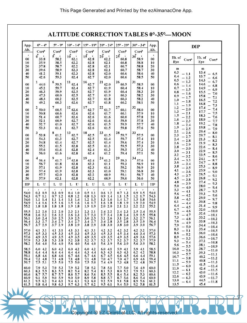 Description: Complete 2025 Nautical Almanac including all daily pages, the Pole Star Tables, and all interpolation and correction tables available in the official Nautical Almanac. Everything you need to find the GHA and Declination of the observed body, correct your sextant altitude observation (Hs) and produce the observed altitude (Ho) needed for the sight reduction, and determine solar system event times.