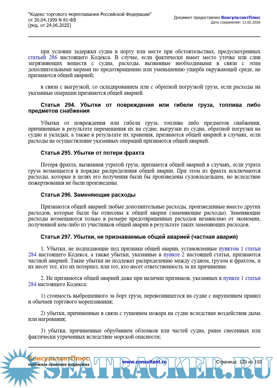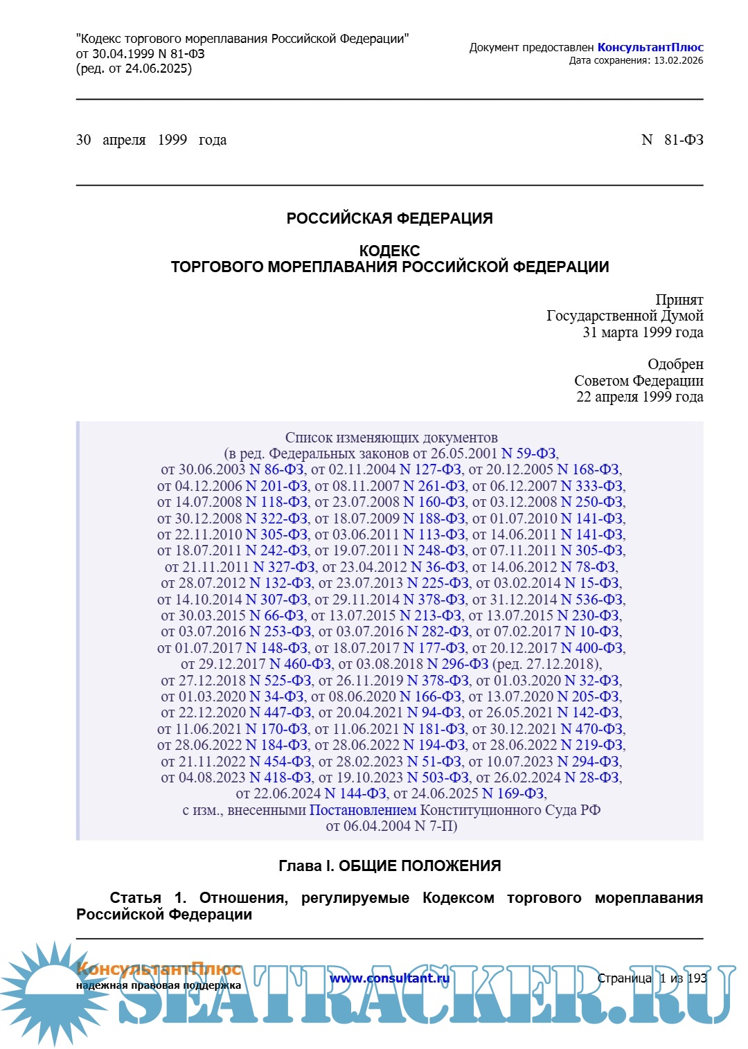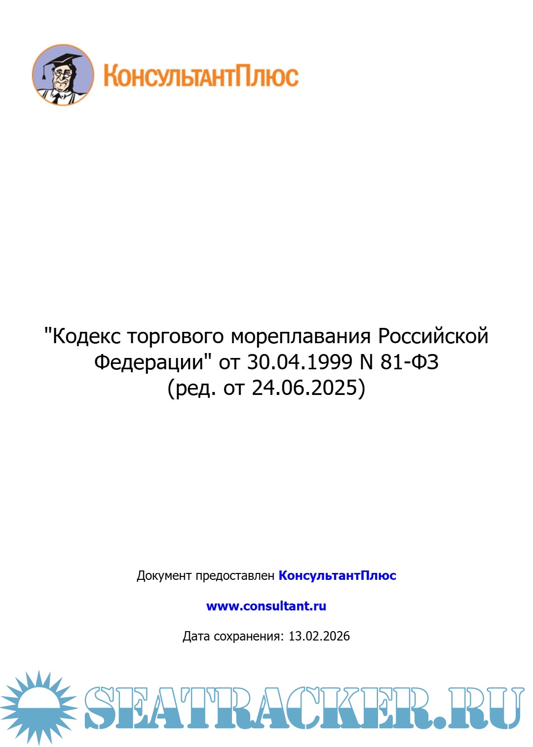 Кодекс торгового мореплавания Российской Федерации (ред. от 24.06.2025)