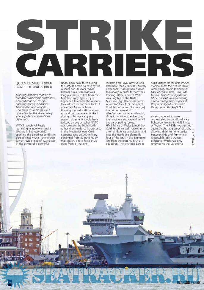 The Guide looks at the current status of the two huge new strike carriers HMS Queen Elizabeth and HMS Prince of Wales, which are ramping up for operations with air wings of F-35B supersonic jump jets and helicopters and to project troops and their equipment ashore