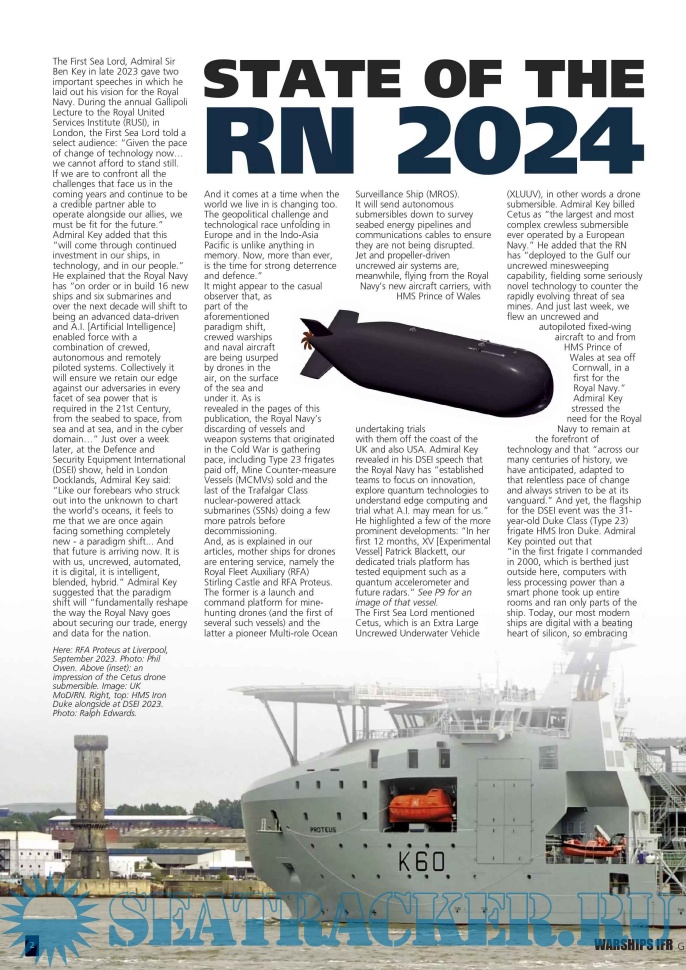 How the future of the UK’s maritime aviation is being shaped by drones will also be considered, along with profiles of the new Royal Fleet Auxiliary mine warfare mothership RFA Stirling Castle and ocean surveillance platform RFA Proteus. The latter is needed to prevent sabotage of seabed internet cables and gas pipelines.