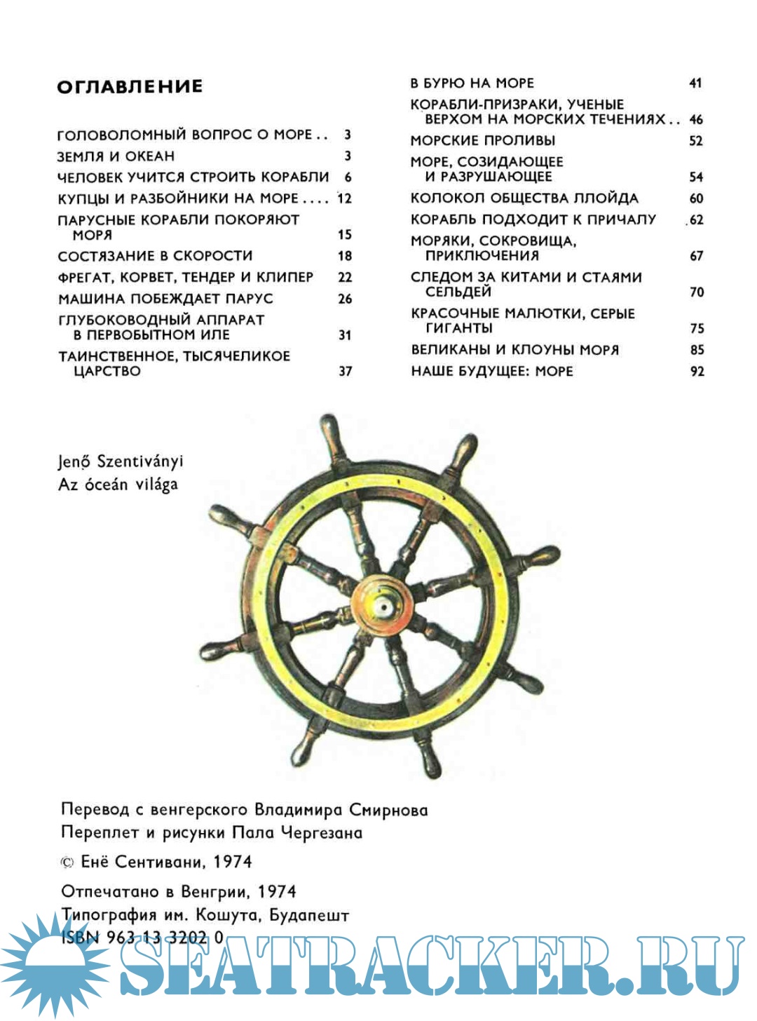Описание: Красочно иллюстрированная книга для детей младшего и среднего школьного возраста рассказывает о морях и океанах, мореплавателях и пиратах, фрегатах и клиперах, течениях и проливах, морских животных и растениях. Перевод с венгерского Владимира Смирнова. Переплет и рисунки Пала Чергезана.