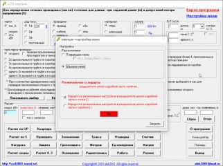 - В Разное (кнопка Разное) добавлен расчет Включение 3 фазного двигателя в бытовую сеть (кнопка 7).