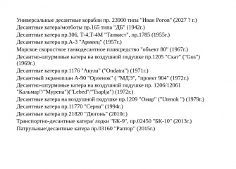 Описание: Приведены ТТХ, общие виды и краткое описание десантных кораблей и катеров СССР и России.