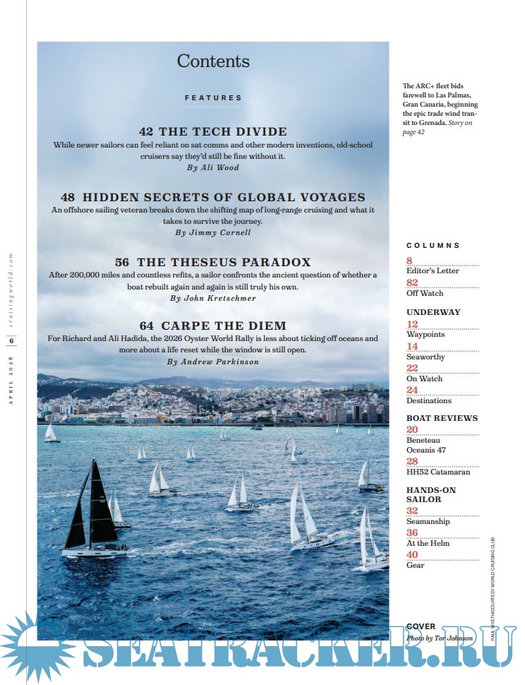 Year: 2026 Language: English Author: Andrew Parkinson (editor) Genre: Periodical (Magazine) Edition: 2026-04 Format: PDF Quality: eBook Pages count: 84 Description: Cruising World is your passport for exploring the world's coastlines and oceans while voyaging under sail. Its contributors inspire and entertain through stories, pictures and videos that underscore the beauty and adventure of sailing, while providing instruction on the disciplines of seamanship, navigation and boat handling.