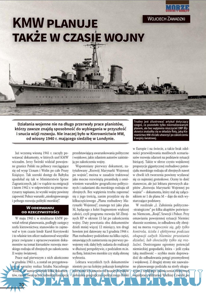 Description: Польский морской журнал. Издается с 1996 года, первоначально как ежеквартальный. С 1999 года издается раз в два месяца, а с 2007 года-как ежемесячный. Первоначально назывался Morza Statki i Okrety, в 2006 году переименован в Morze Statki i Okrety. С 2004 года полностью цветной (ранее только вставки). В 2008 году стали издаваться специальные выпуски, первоначально нерегулярные. С 2014 года выпускается как обычное издание и специальное издание, с непрерывной нумерацией.