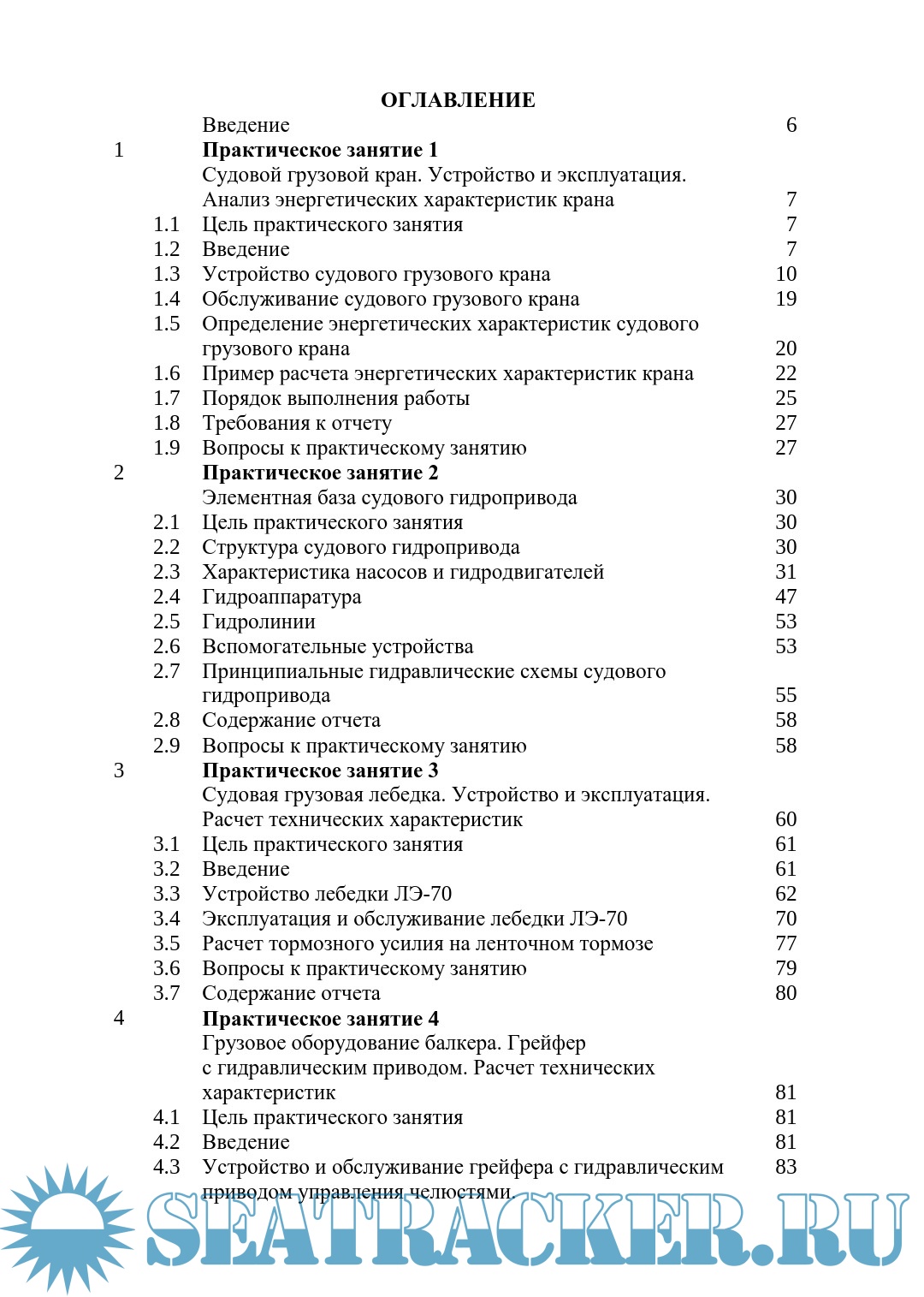 Описание: Рассматриваются конструкция, работа, расчеты основных параметров и основы эксплуатации устройств судна при изучении курса «Технические средства комплексной механизации». Предназначено для студентов очной и заочной форм обучения Севастопольского государственного университета, Морского института, направления подготовки 26.03.01 «Управление водным транспортом и гидрографическое обеспечение судоходства». Выполнение практических занятий направлено на изучение следующих компе-тенций: УК-2. Способен определять круг задач в рамках поставленной цели и выбирать оптимальные способы их решения, исходя из действующих правовых норм, имеющихся ресурсов и ограничений; ПК-4. Способность эксплуатировать оборудование в соответствии с требованиями нормативно-технических документов, правил техники безопасности, производственной санитарии, пожарной безопасности и норм охраны труд; ПК-12. Способность к организации и управлению перевозками грузов и пассажиров с участием водного и смежных видов транспорта, транспортно-логистическими процессами в интегрированных транспортно-технологических системах с участием водного транспорта. Для повышения качества обучения преподаватель имеет право назначать уровень сложности изучения пособия (глубины рассмотрения) в зависимости от личных качеств обучающегося. Для раскрытия понимания обучающимся задач, поставленных в пособии, преподаватель имеет право задавать дополнительные вопросы по существу рассматриваемой темы.