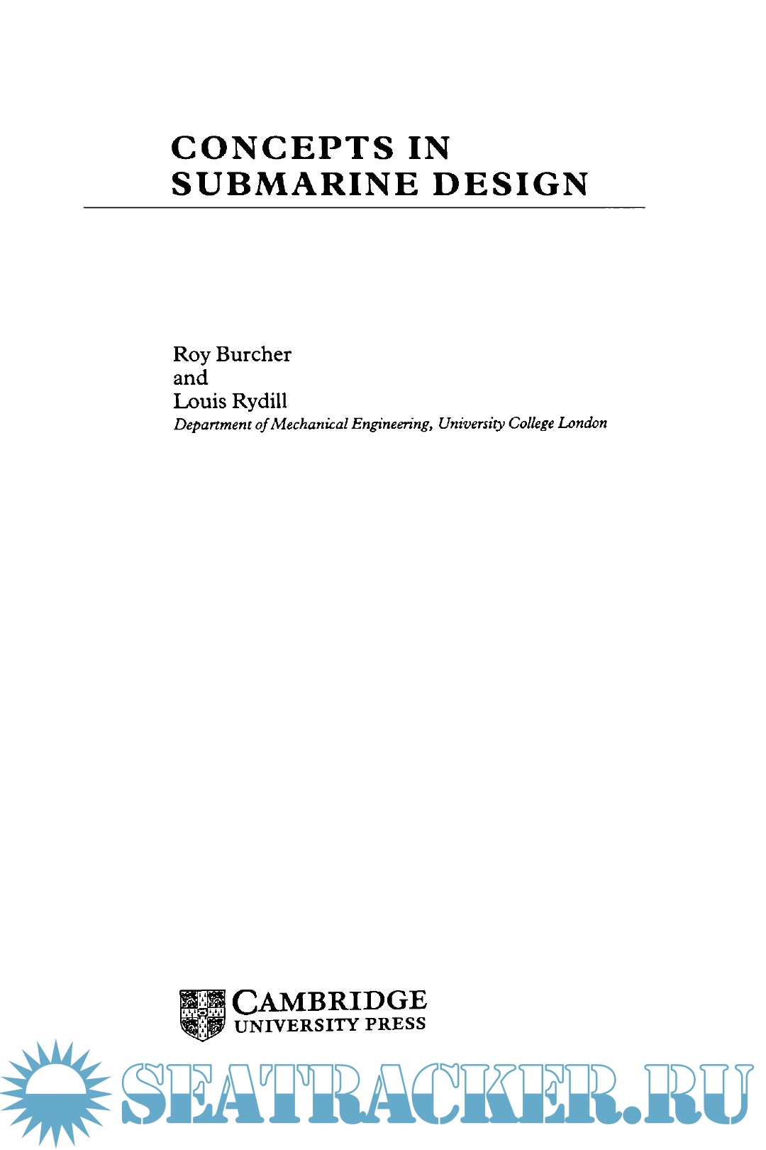 Year: 1995 Language: English Author: Burcher R., Rydill L.J Genre: Shipbuilding Publisher: Cambridge University Press Edition: 1st ISBN: 052155926X Format: PDF Quality: Scanned pages Pages count: 322 Description: This book shows how the engineering and architectural aspects of submarine design relate to each other, and describes the operational performance required of a vessel. The authors explain concepts of hydrodynamics, structure, powering and dynamics, in addition to architectural considerations that bear on the submarine design process. They pay particular attention to the interplay among these aspects of design, and devote a final chapter to the generation of the concept design for the submarine as a whole. Submarine design makes extensive use of computers, and the authors give examples of algorithms used in concept design. They provide engineering insight as well as an understanding of the intricacies of the submarine design process. The book will serve as a text for students and as a reference manual for practicing engineers and designers in marine and naval engineering.