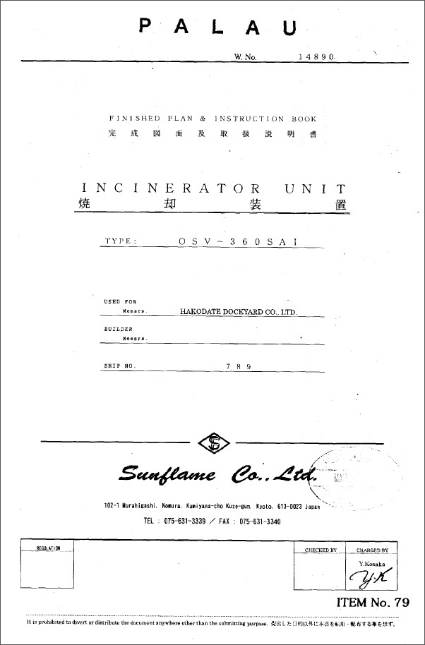 Incinerator Unit Type : OSV— 360SAI - Palau / Finished plan & instruction book