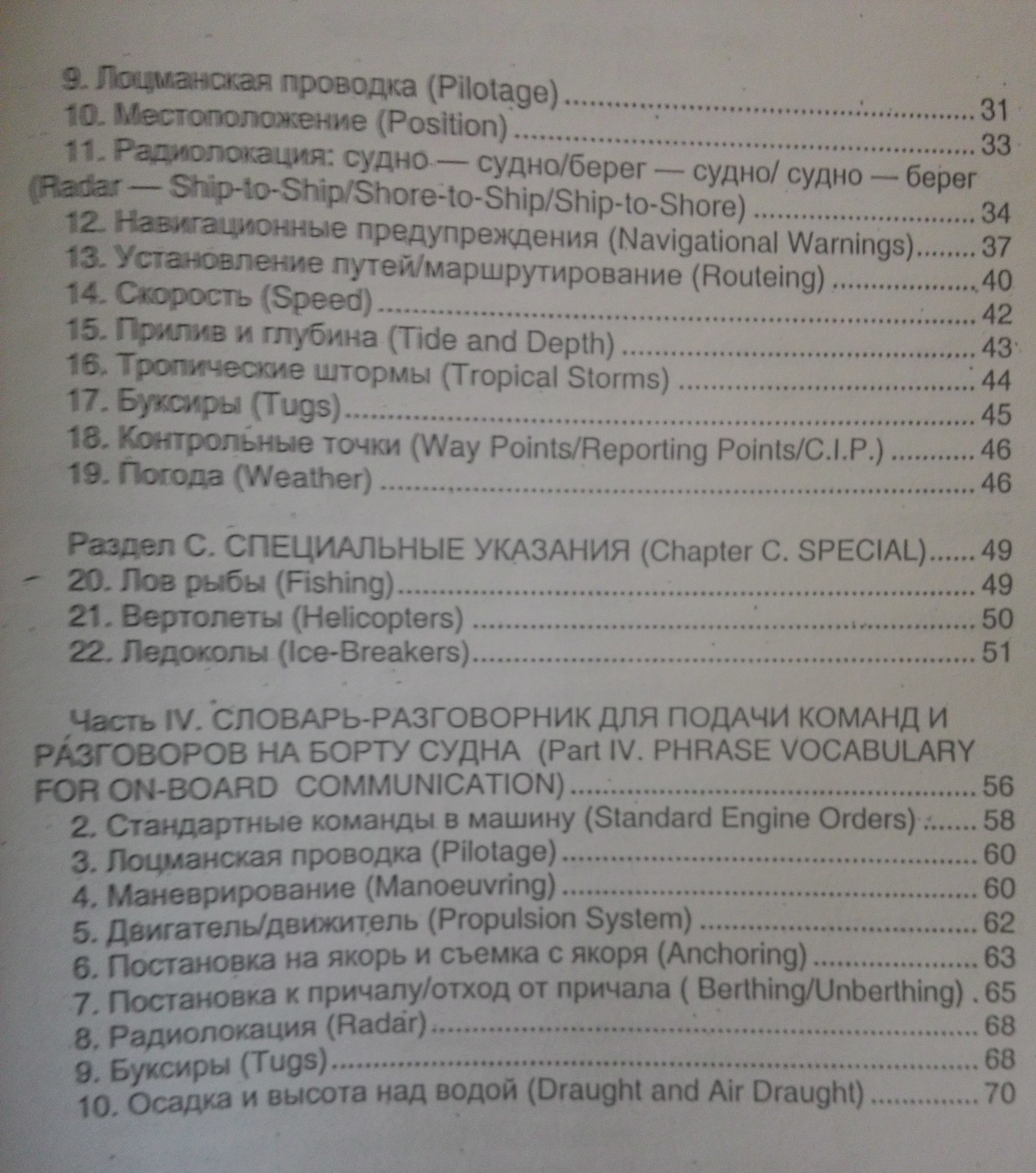 Описание: Стандартный морской навигационный словарь-разговорник предназначен для связи по вопросам обеспечения безопасности плавания и оказания помощи на море между судами различной национальности, а также судами и берегом и между судами, когда отсутствует общин язык и в случаях возникновения языковых трудностей.