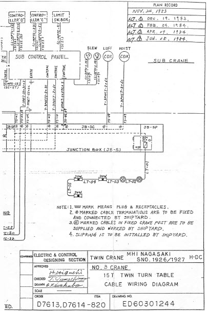 This equipment is used for controlling KDIST and LUFFING functions of the Twin-Deck CraneAMAIN and SUB crane.
