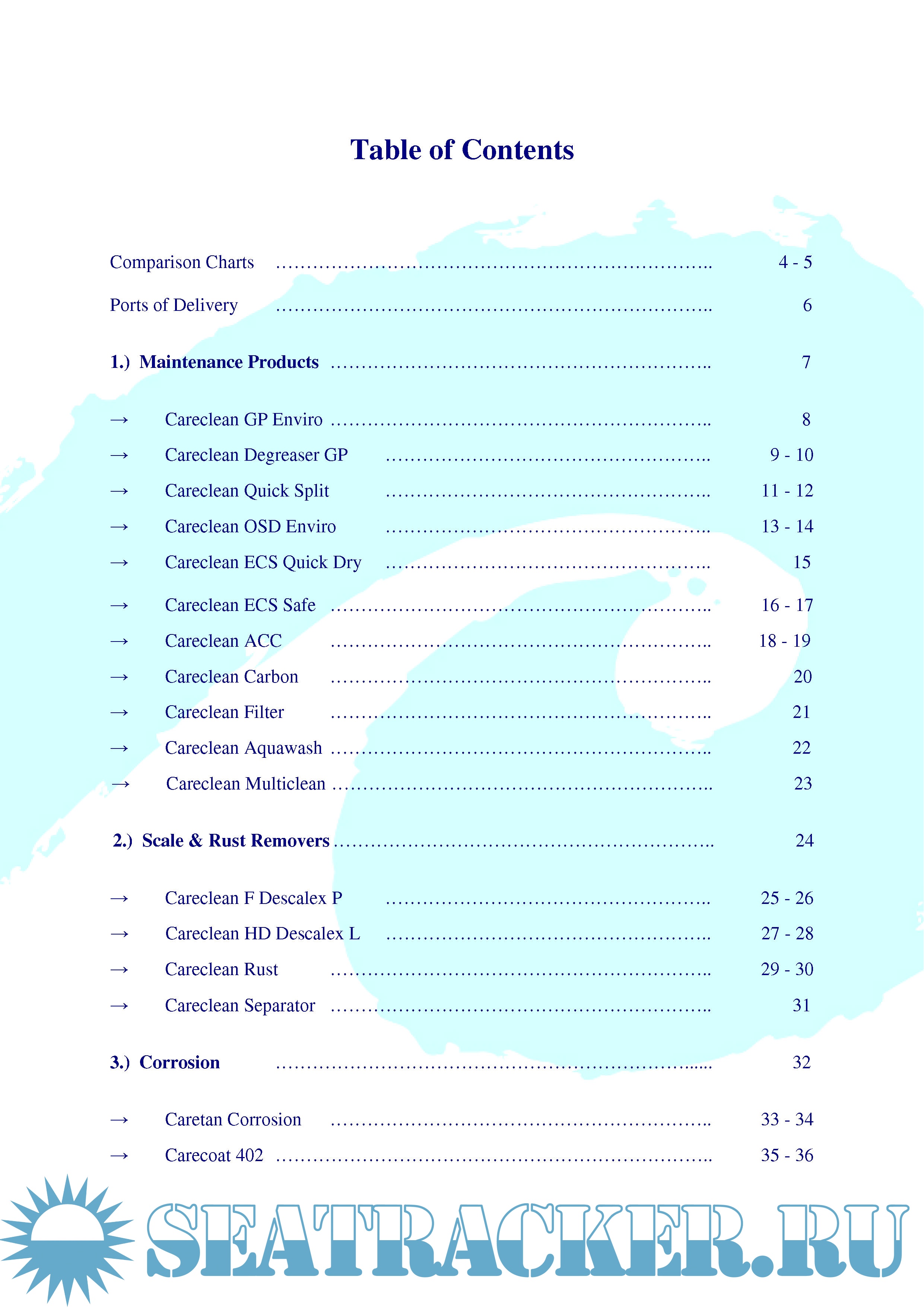 Year: 2006 Language: english Author: Care Clean Genre: Presentation Format: PDF Quality: eBook Description: Marine care chemicals data sheet and catalogue. Additional info: Contains data sheets fot marine chemicals used on ships.