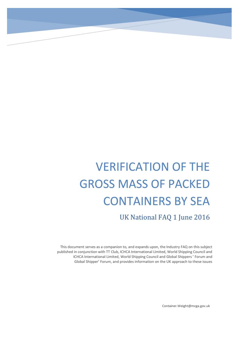 - Verification of the Gross Mass of Packed Containers by Sea - UK National FAQ (1 June 2016).