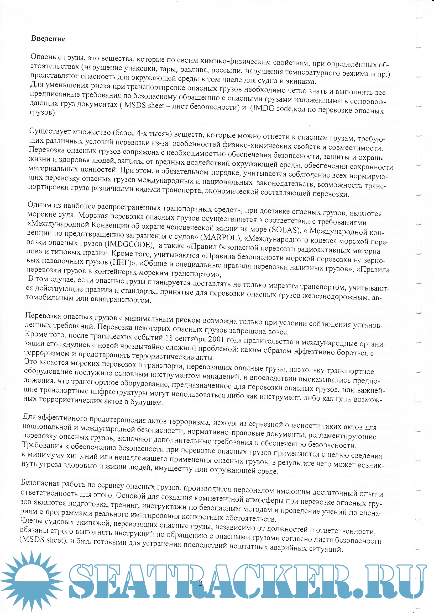Безопасность морской перевозки Опасных грузов