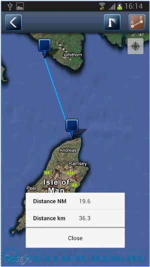 - Расчет курса (расстояние между двумя пунктами на карте)