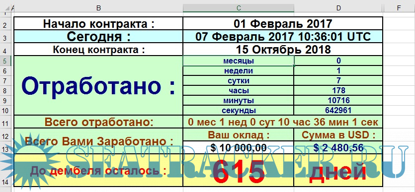 Описание: Расчет зарплаты путем ввода оклада и начало-конец контракта