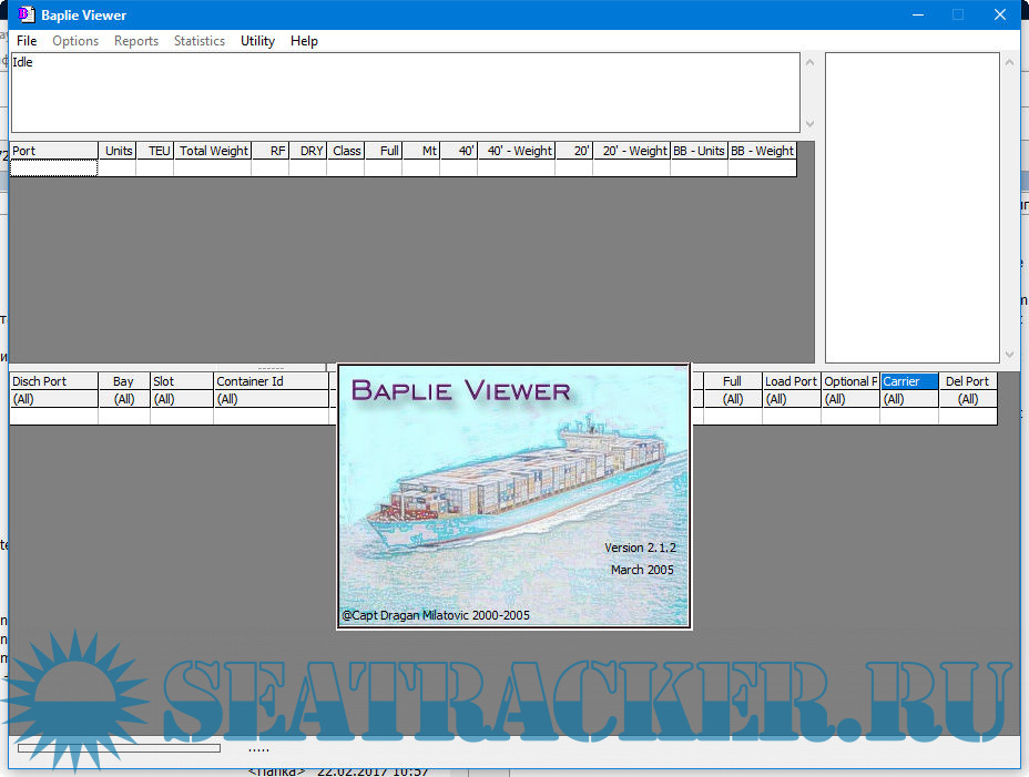 Baplie viewer (BV), decodes BAPLIE file. Baplie is textual file that is transmitted between container terminals and/or from terminal to a vessel.