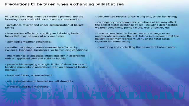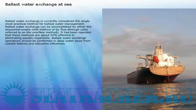 Year: 2016 Language: english Genre: Learning Video Playtime: 11:22 Quality: CamRip Format: MP4 Video: 640x360 / 192 kbps / 16:9 Audio: 96 kbps / 44.1 KHz Description: Ballast water treatment techniques to eliminating invasive aquatic species, reducing corrosion and complying with IMO ballast water guidelines. Ballast Water Management System for ships. Ocean-going ships take on ballast water to maintain stability when sailing without cargoes. This system ensures that ballast water is harmless when it is discharged into the sea at the loading port. Animal and plant plankton, bacteria, and other harmful materials in the ballast water are removed by the combined use of a high-performance filter, chemicals and venture tubes. This Section will provide you with information about various techniques for treating ballast water. Ballasting. Ballast water exchange at sea. Sequential method. Flow-through method. Ballast System. Precautions to be taken when exchanging ballast at sea . Non-release of blast water. Discharge to shore facility . Sediment removal. Ballast Techniques. Contingency procedures. Tang-ency procedures. Other not yet approved techniques. Mechanical treatment methods such as filtration separation. Physical treatment. Ballast Methods. Chemical treatment. Ballast water sampling. Location of sampling points.