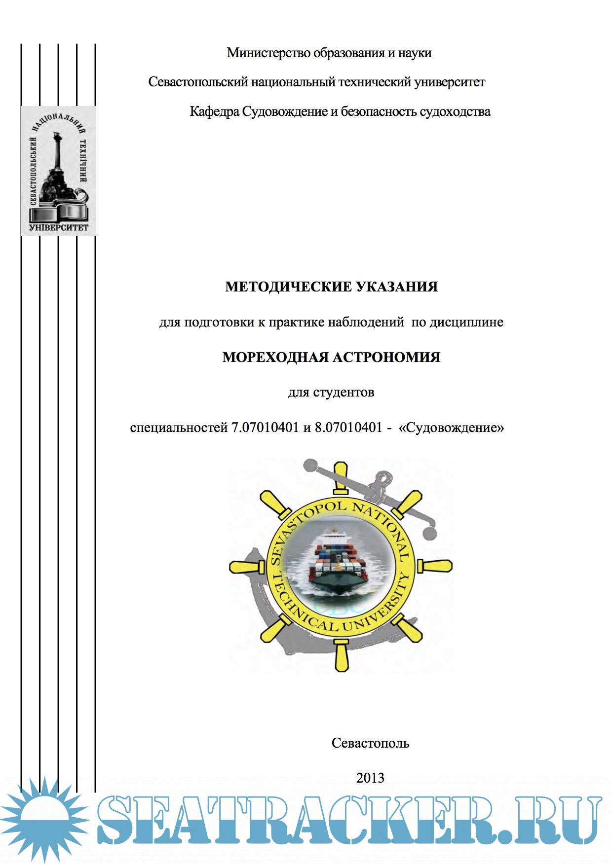 Цель методических указаний – дать студентам необходимую информацию и оказать практическую помощь при организации работ по подготовке астронавига- ционных приборов, их выверки и при самостоятельных вычислениях задач море- ходной астрономии.