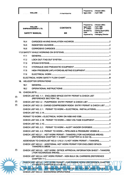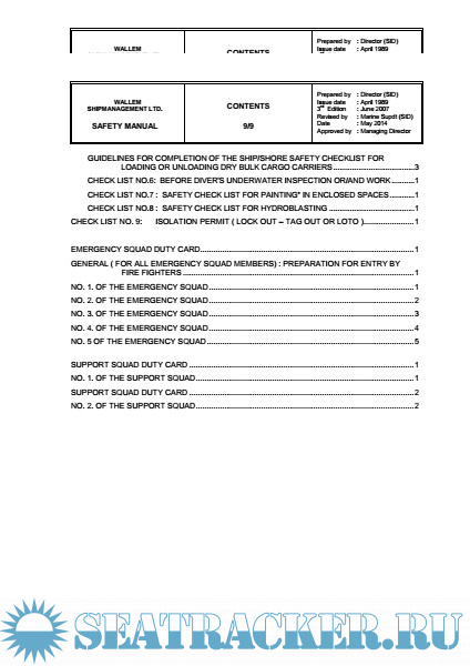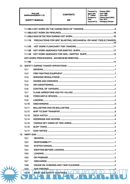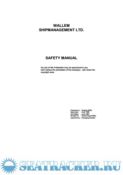 Year: 2011 Language: english Author: Wallem Shipmanagement LTD Genre: Handbook Format: PDF Quality: eBook Number of pages: 215 Description: SAFETY MANUAL was developed by company WALLEM SHIPMANAGEMENT LTD.