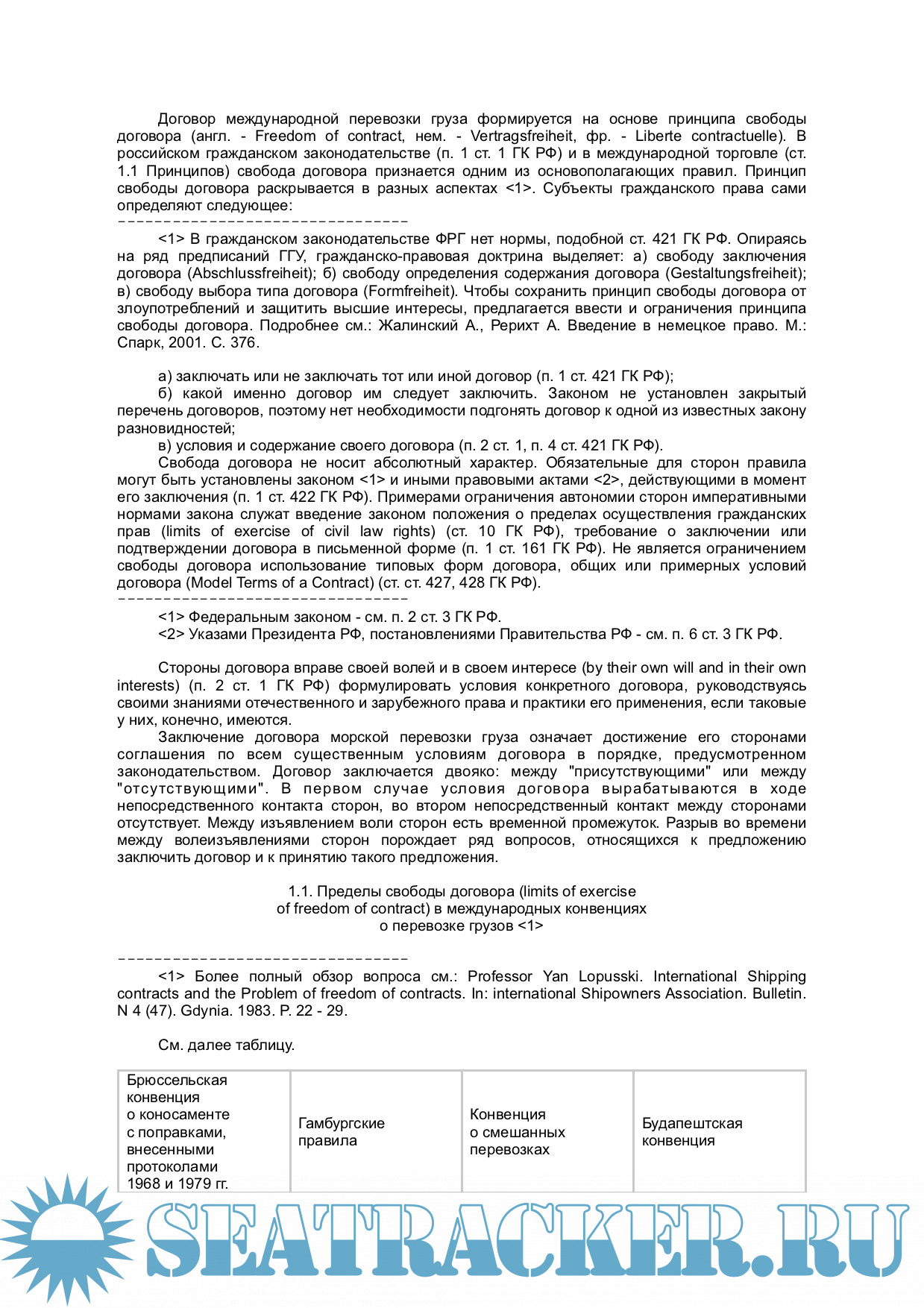 1.1. Пределы свободы договора (limits of exercise of freedom of contract) в международных конвенциях о перевозке грузов