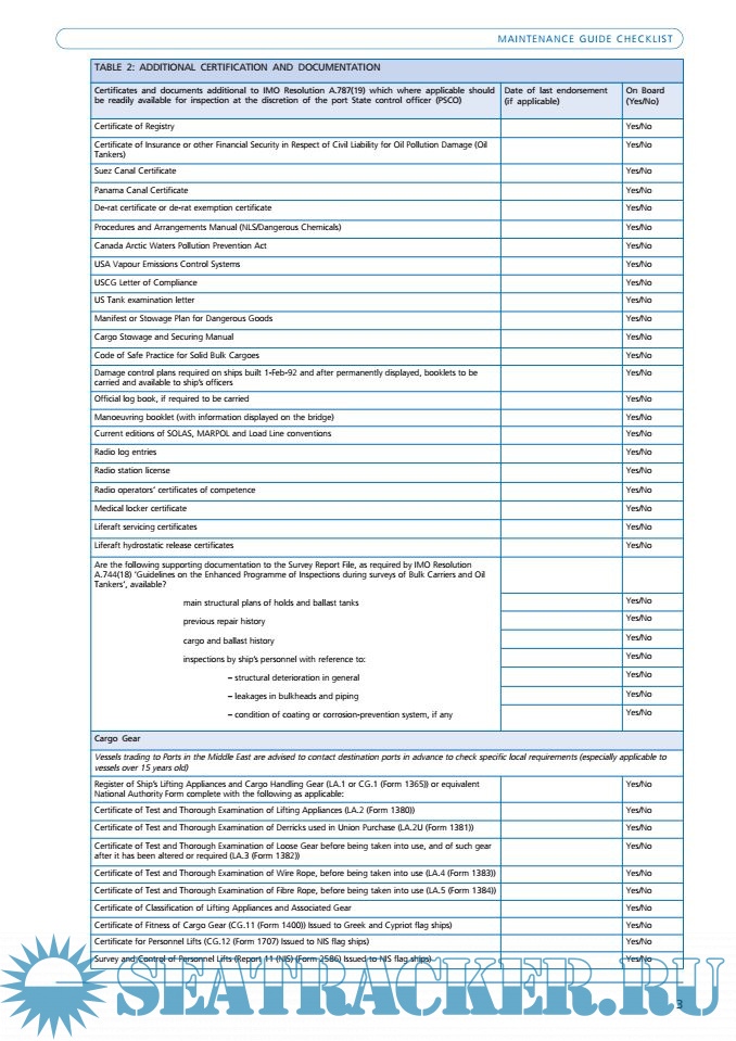 Description: This list is provided to owners for guidance purposes only and is intended to supplement the owners own operation and maintenance procedures. The list has been compiled from analysis of port State control reported deficiencies.