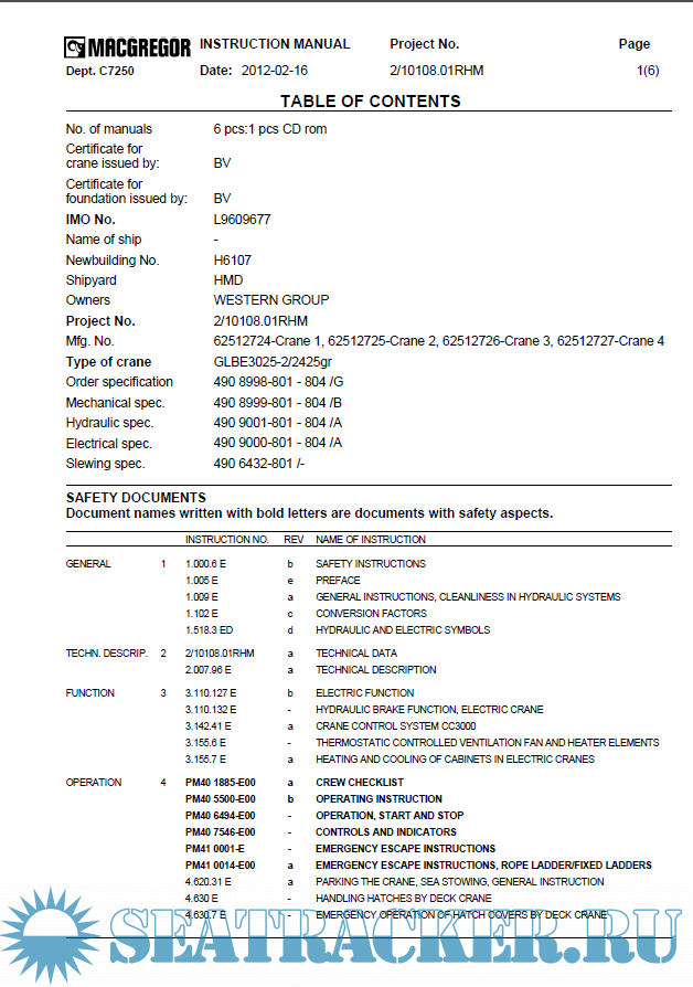 Description: MacGregor Crane Type: GLBE3025-2/2425gr complete Instruction Manual