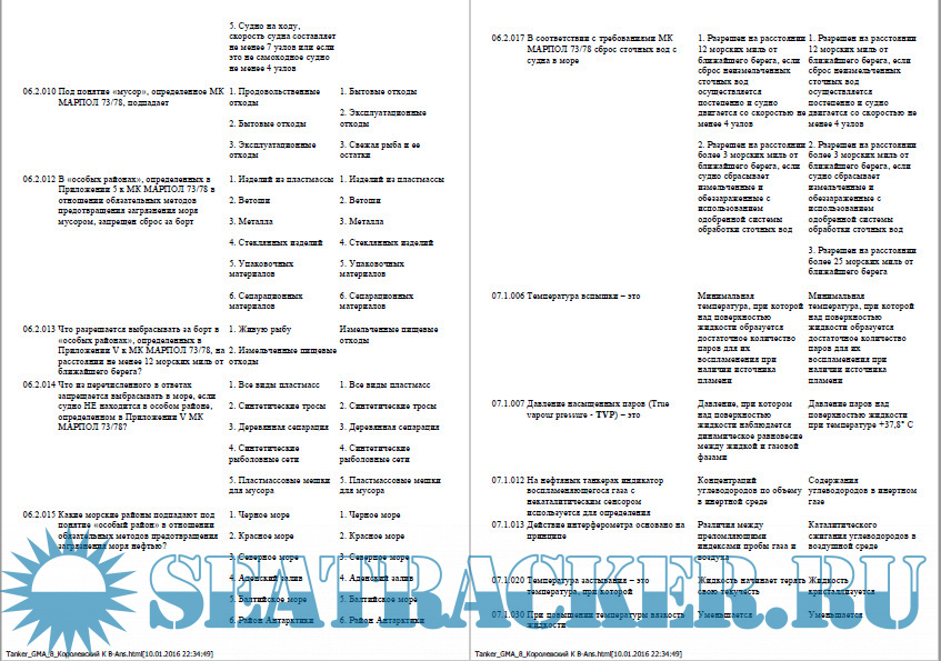 Год выпуска: 2015 Язык: русский Автор: ООО “Сторм” Жанр: Ответы (шпаргалки) Издательство: ООО “Сторм” Издание: - ISBN: - Формат: PDF Качество: Изначально компьютерное (eBook) Количество страниц: ~100 Описание: Подборка Дельта Танкер v. 2/3.03 декабрьская база 2015 года - Нефтеналивные танкера и химовозы. Уровень эксплуатации - Нефтеналивные танкеры. Уровень Управления - Нефтеналивные танкеры_ALL - Танкеры химовозы. Уровень управления - Танкеры-химовозы ALL
