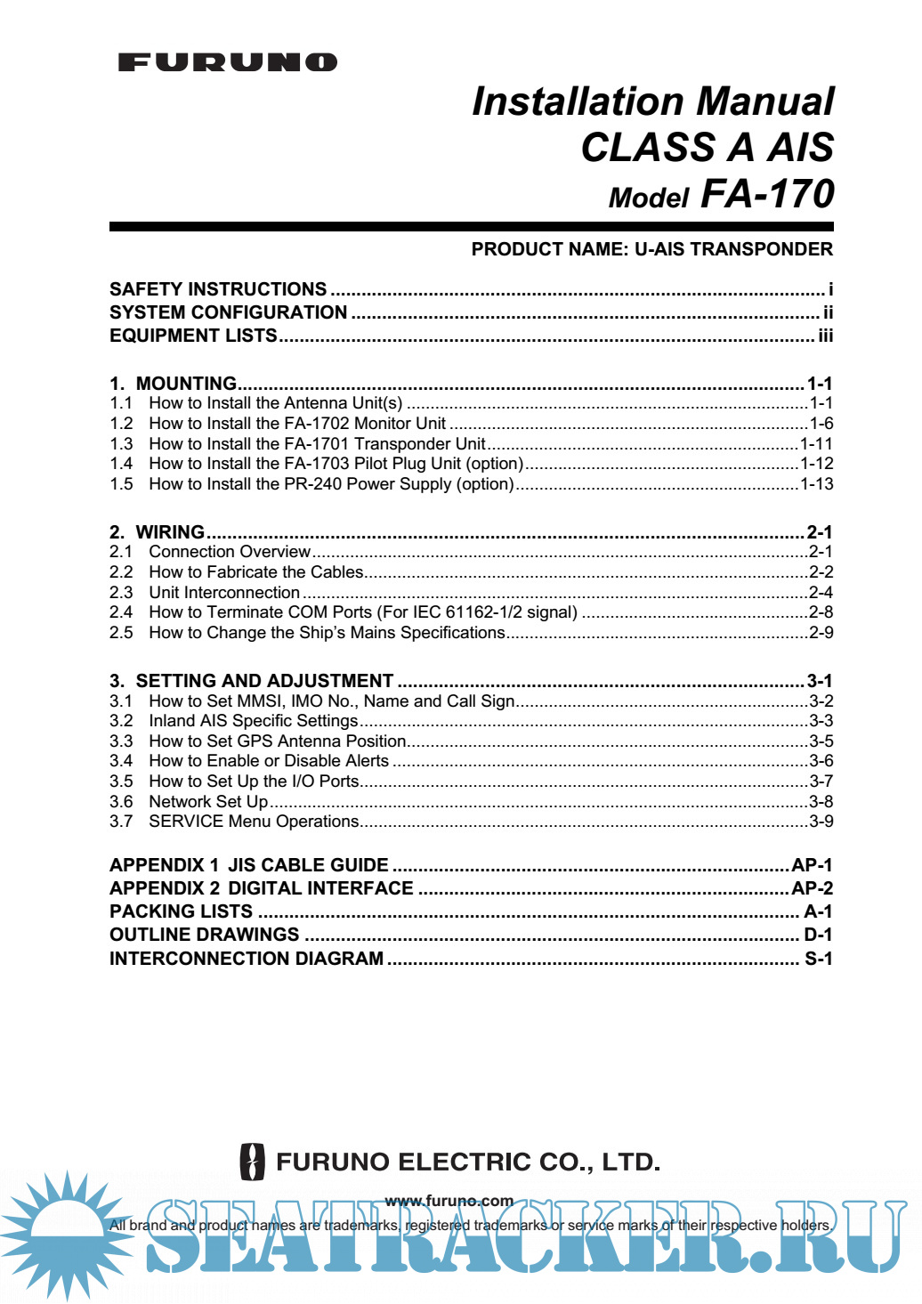 Furuno Class A AIS Installation Manual FA-170