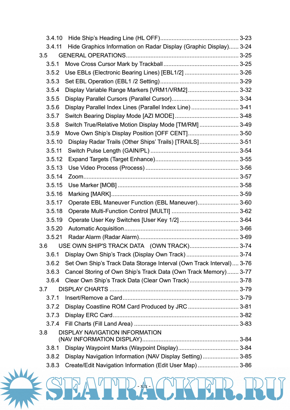 Year: 2010 Language: english Author: JRC Genre: Manual Publisher: JRC Edition: 3 Format: PDF Quality: eBook Pages count: 512 Description: The JMA-5200MK2 series is a color radar system designed to comply with the international standards of the IMO. The main functions include: • sensitivity adjustment • sea clutter and rain/snow clutter suppression • interference rejecter • bearing and range measurement using a cursor, fixed/variable range markers, and electronic bearing line • own track display • NAV line and marker displays • TM (True Motion) presentation • self-diagnostic facilities • radar performance monitoring (Performance Monitor) • TT functions (manual/automatic, target acquisition and tracking, vector and trail displays and alarm displays) (option) • simple plotter functions (marker and line display, destination/route setting) (option)
