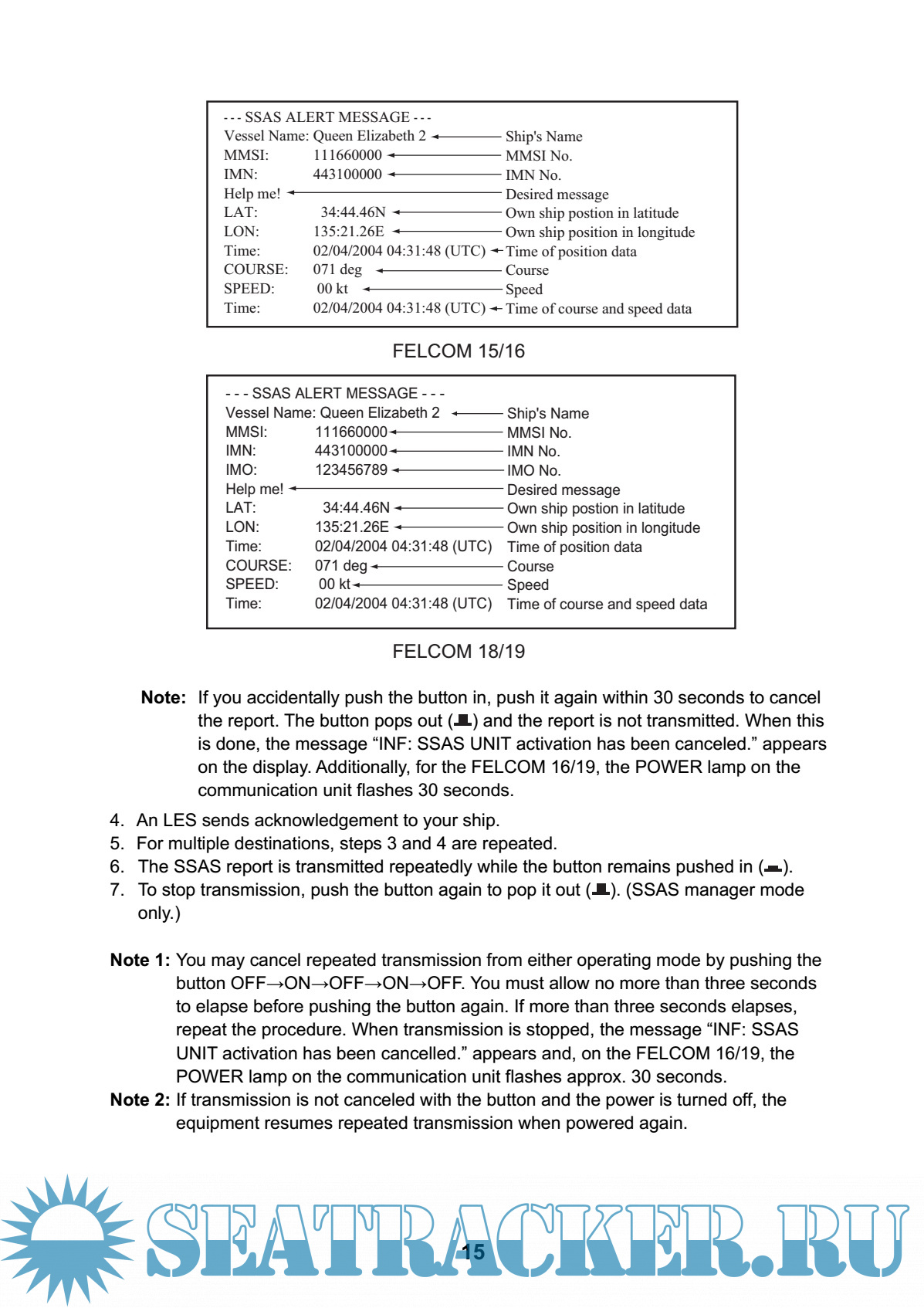 No., position, etc. is sent to up to five locations, specified by the ship’s captain or authorized