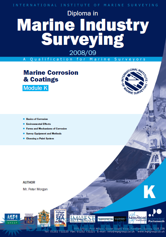 Description: The International Institute of Marine Surveying has published the Marine Industry Surveying for getting the Survey diploma, the Module K is focused on Marine Corrosion and Coating, which gives the basics of corrosion, environmental Effects, forms and mechanisms of corrosion, suvey equipment and methods and including how to choose a paint system. It is very useful book for Marin suveyors, and can be used as a handbook for deck officers especially the masters and cheif officers.