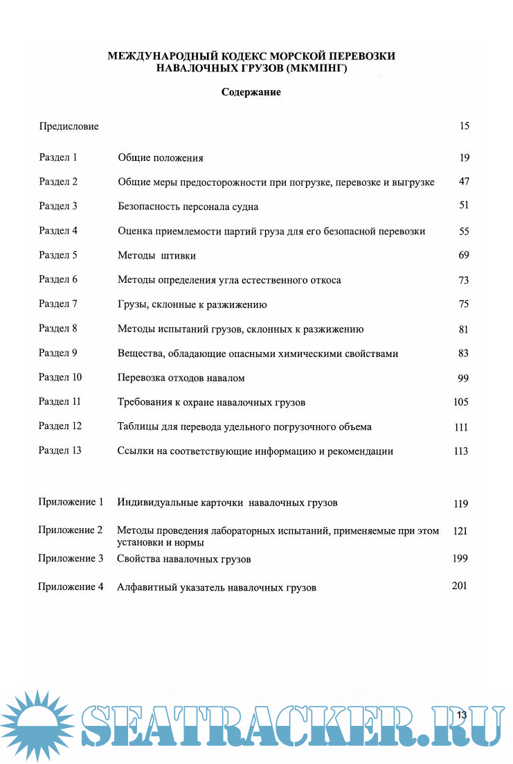 Книга 1 содержит на английском и русском языках текст Международного кодекса морской перевозки навалочных грузов (МКМПНГ) с Приложениями 2 и 3. Текст Кодекса откорректирован резолюцией MSC.318(89) путем включения в него поправки 01-11 и дополнен следующими документами ИМО: Кодекс безопасной практики погрузки и разгрузки навалочных судов (Кодекс BLU); Руководство для представителей терминалов по погрузке и выгрузке навалочных грузов (Приложение к Кодексу BLU); Перечни навалочных грузов, для которых может быть изъято требование к установке стационарной системы газового пожаротушения или для которых стационарная система газового пожаротушения является недостаточно эффективной (циркуляр MSC/Circ.1395 от 15 июня 2011 года); Пересмотренные рекомендации по входу в закрытые помещения на судах (резолюция А.1057(27) от 30 ноября 2011 года); Рекомендации по безопасному использованию пестицидов на судах при фумигировании грузовых трюмов (циркуляр MSC.l/Circ.1264 от 27 мая 2008 года).