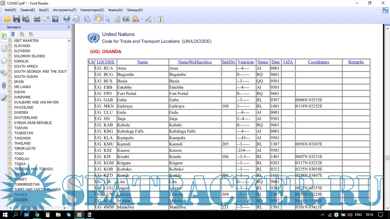 Year: 2018 Language: english Author: http://www.unece.org Genre: Handbook Format: PDF Quality: OCR without errors Number of pages: 3108 Description: UN/LOCODE стран и городов
