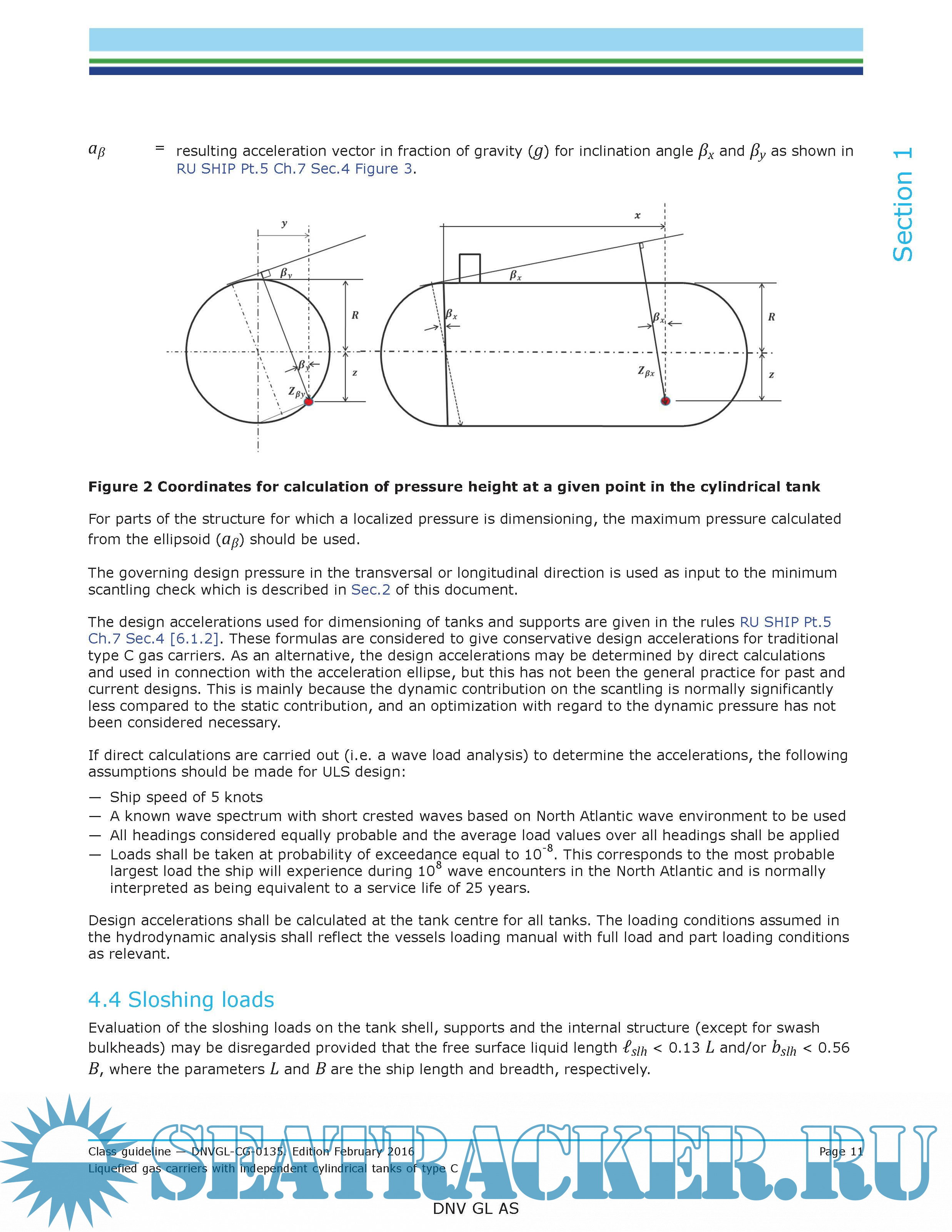 cylindrical tanks of type C. Design and assessment procedures are given for hull structures and cargo tanks