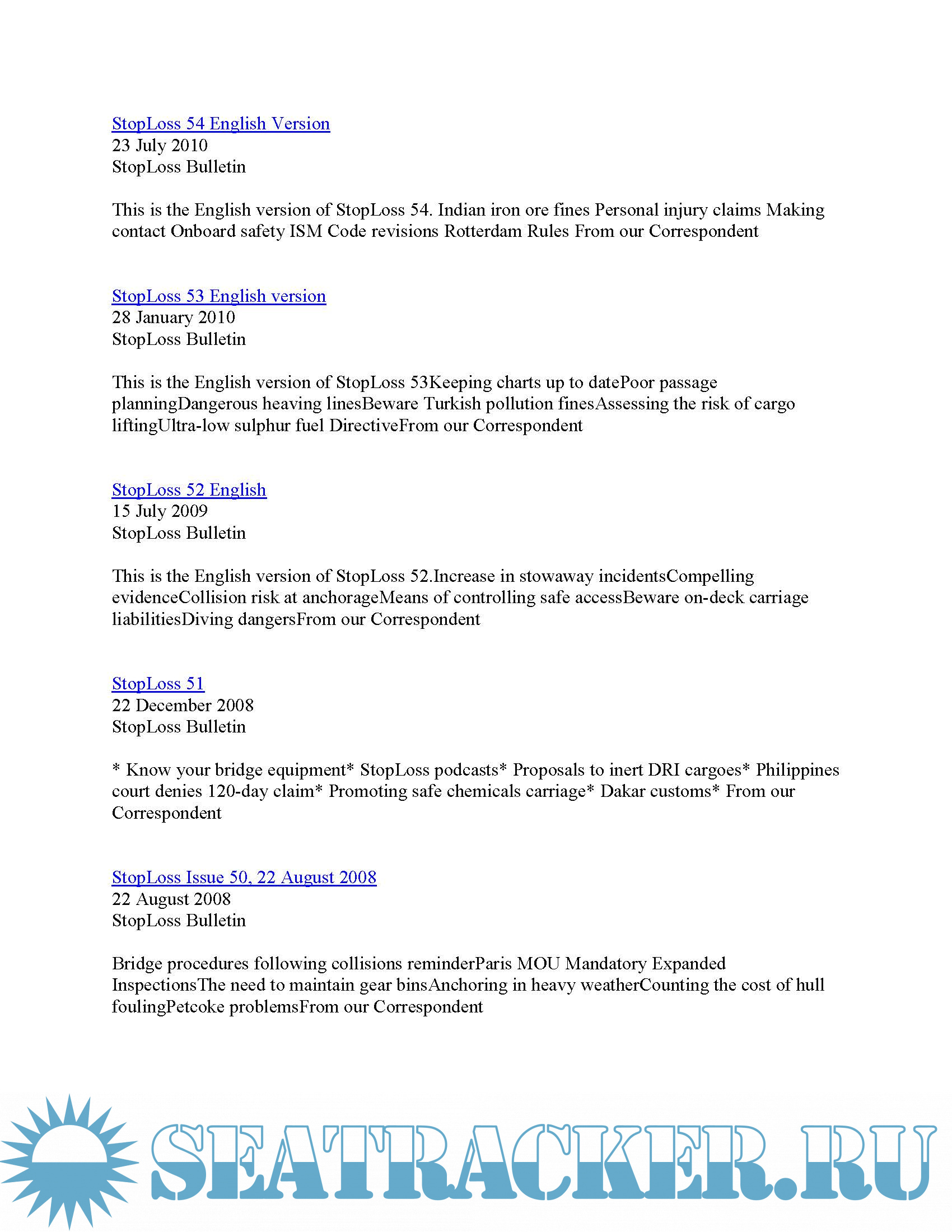 STOPLOSS BULLETINS 50-70