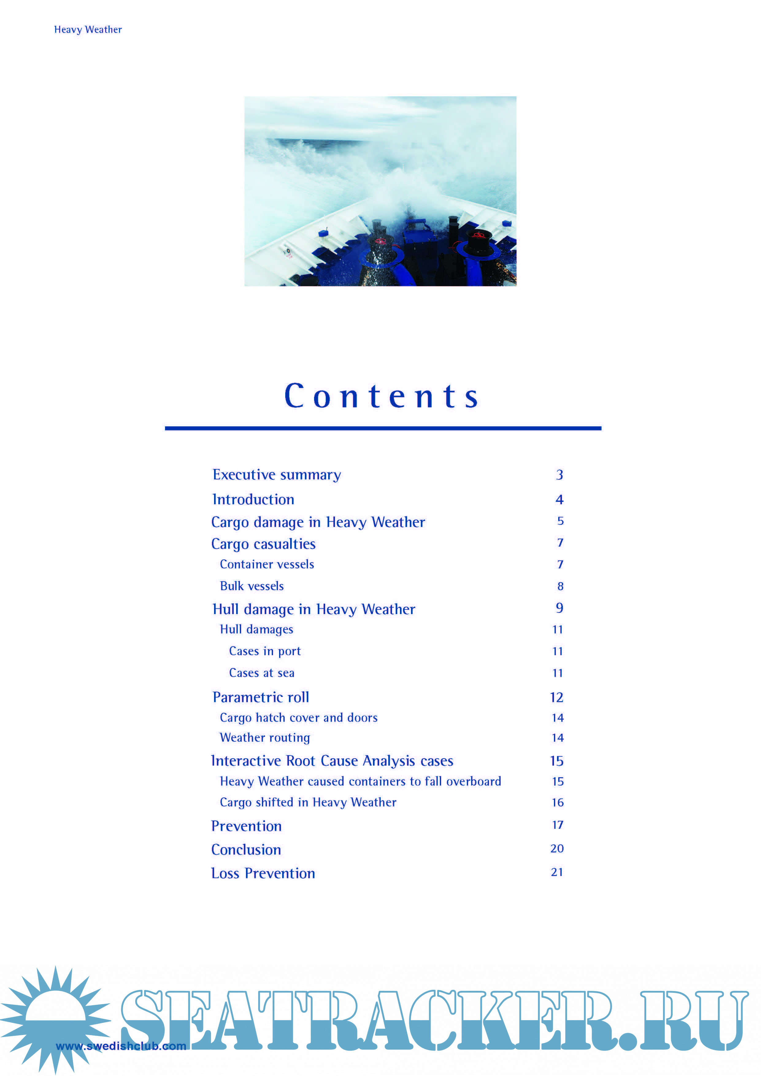 Year: 2014 Language: english Author: Swedish P&I Club Genre: Guide Format: PDF Quality: eBook Pages count: 22 Description: Heavy weather does not only cause typical P&I claims such as damage to cargo or loss of cargo overboard. Heavy weather also causes H&M claims, which can include structural damage to the vessel or, damage to machinery and equipment etc. A large proportion of cases where containers are lost at sea occur in heavy weather.