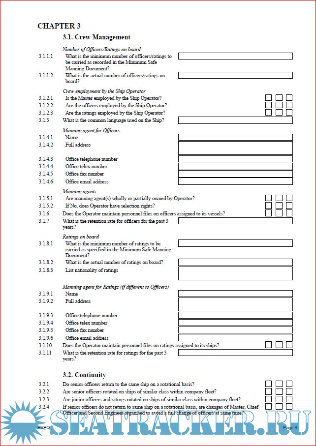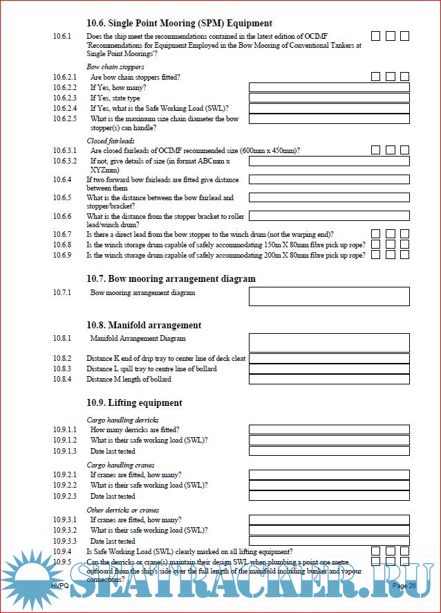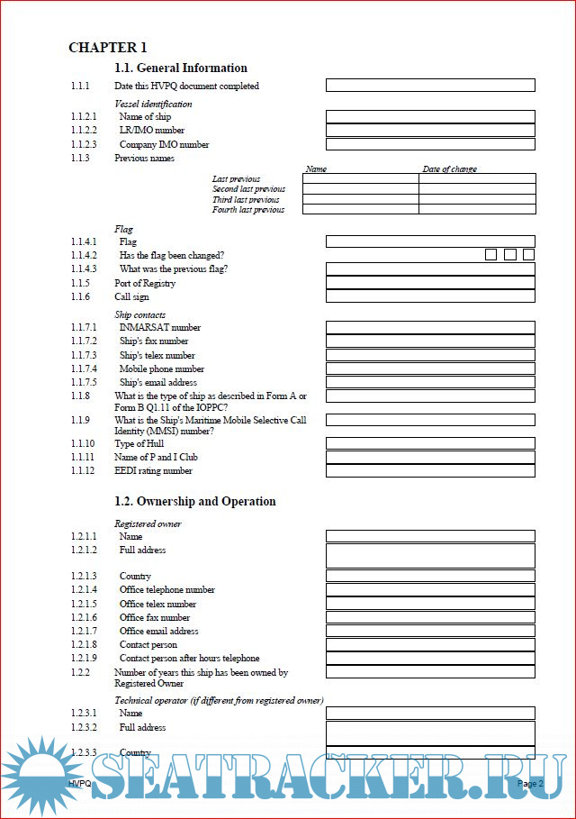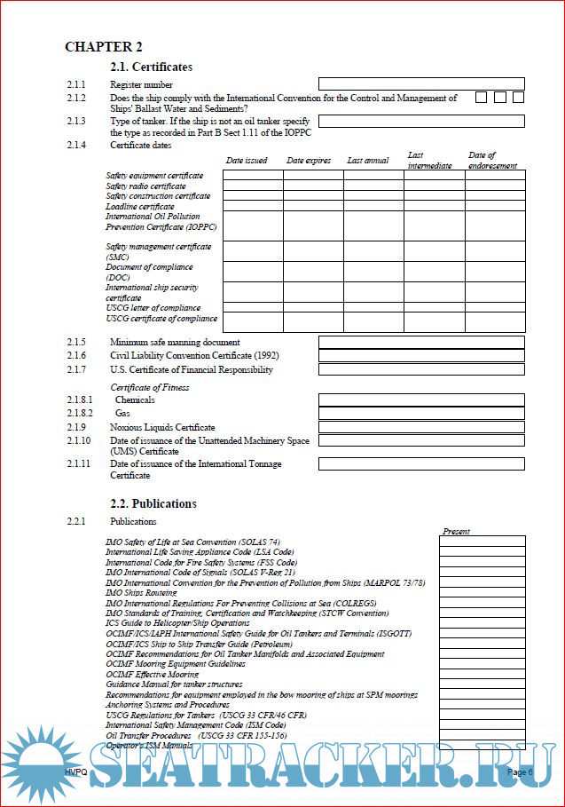 Description: For assessment purposes, the Vessel Particulars Questionnaire (VPQ) to be used in conjunction with the current version of SIR.