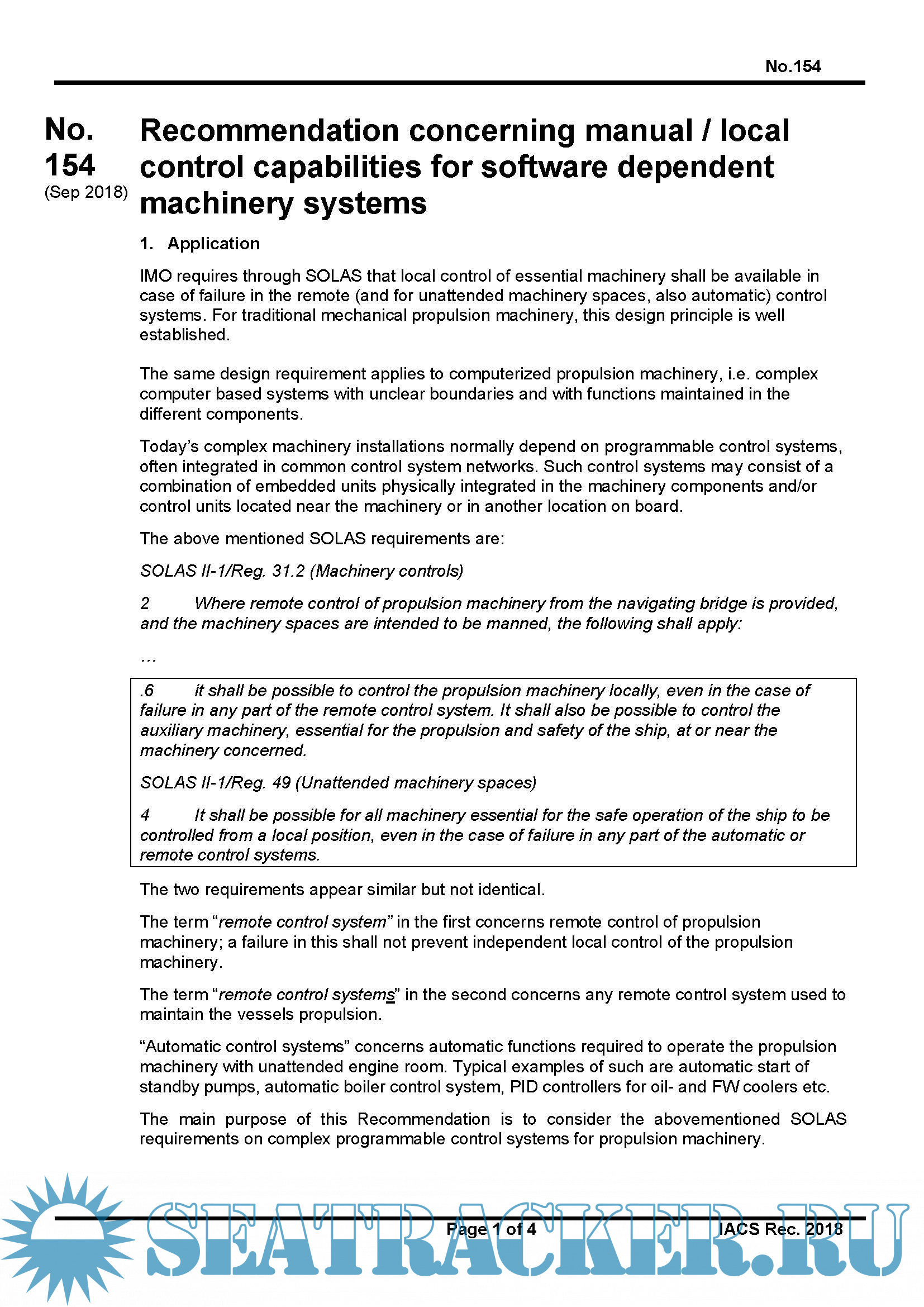 No. 154 (Sept. 2018) - Recommendation concerning manual / local control capabilities for software dependent machinery systems (4 Pages)