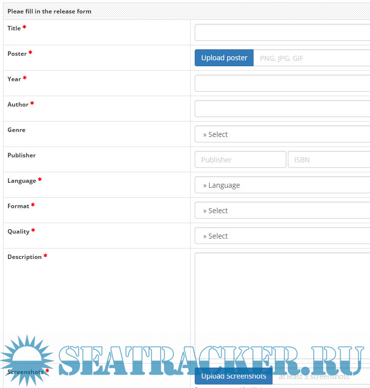 Click the pencil on the right top to enable editing so that you can complete and fill the required fields and the required screenshots . The required book contents must be either in text or as image screenshot(s) . Submit and again download your torrent. Then just wait for the others to download your torrent. A moderator will check your upload if ok, and if so, then you will see it.