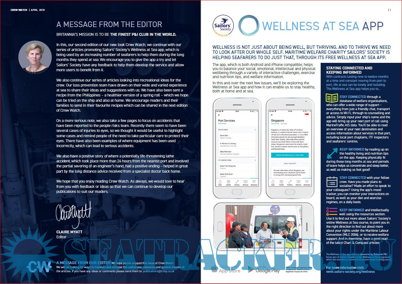 Description: The quarterly publication of Crew Watch (formerly known as Health Watch), is aimed directly at Members’ crew with practical advice of topical health and welfare issues.