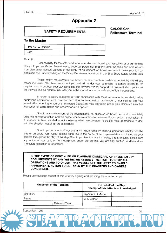 SIGTTO Information Paper no. 16 - Ship/Shore Interface Safe Working Practice For LPG and Liquefied Chemical Gas Cargoes