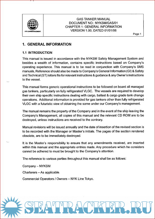 Description: This manual is issued in accordance with the NYKSM Safety Management System and besides a wealth of information contains specific instructions based on Company's operating experience. This manual is to be read in conjunction with Company's SMS manuals.