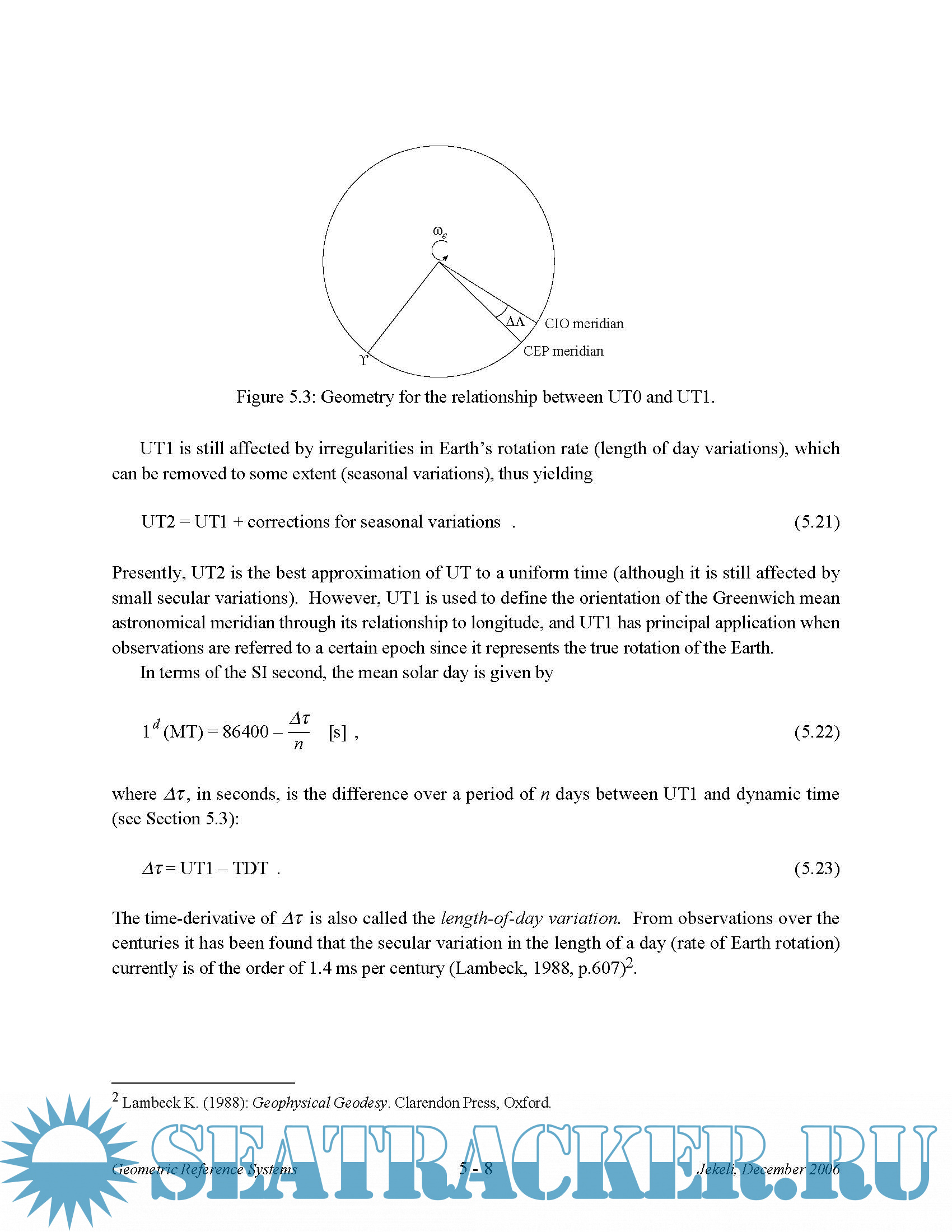 Year: 2006 Language: english Author: Ohio State University Genre: Technical book Format: PDF Quality: eBook Pages count: 202 Description: Geodesy is the science of the measurement and mapping of the Earth’s surface, and being essentially an application of mathematics it makes use of coordinates and associated reference systems. The object of this course is to study the various local, regional, and global reference systems that are in use to describe coordinates of points on the Earth’s surface or in near space and to relate them to each other as well as to some "absolute" frame, visually, a celestial frame. As the name of the course implies, we deal mostly with the geometry of these systems, although the physics of the Earth plays a very important part. However, the relevant geophysics is discussed more comprehensively in other courses on gravimetric geodesy and geodynamics. Also, we do not treat the mapping of points and their coordinates onto the plane, that is, map projections. The purpose is mainly to explore the geometric definition of reference systems and their practical realization. To establish coordinates of points requires that we set up a coordinate system with origin, orientation, and scale defined in such a way that all users have access to these. Only until recently, the most accessible reference for coordinates from a global perspective was the celestial sphere of stars, that were used primarily for charting and navigation, but also served as a fundamental system to which other terrestrial coordinate systems could be oriented. Still today, the celestial reference system is used for that purpose and may be thought of as the ultimate in reference systems. At the next level, we define coordinate systems attached to the Earth with various origins (and perhaps different orientations and scale). We thus have two fundamental tasks before us: 1) to establish an external ("inertial") coordinate system of our local universe that we assume remains fixed in the sense of no rotation; and 2) to establish a coordinate system attached to our rotating and orbiting Earth, and in so doing to find the relationship between these two systems. In fact, we will develop the terrestrial coordinate system before discussing the celestial system, since the latter is almost trivial by comparison and the important aspects concern the transformation between the systems.