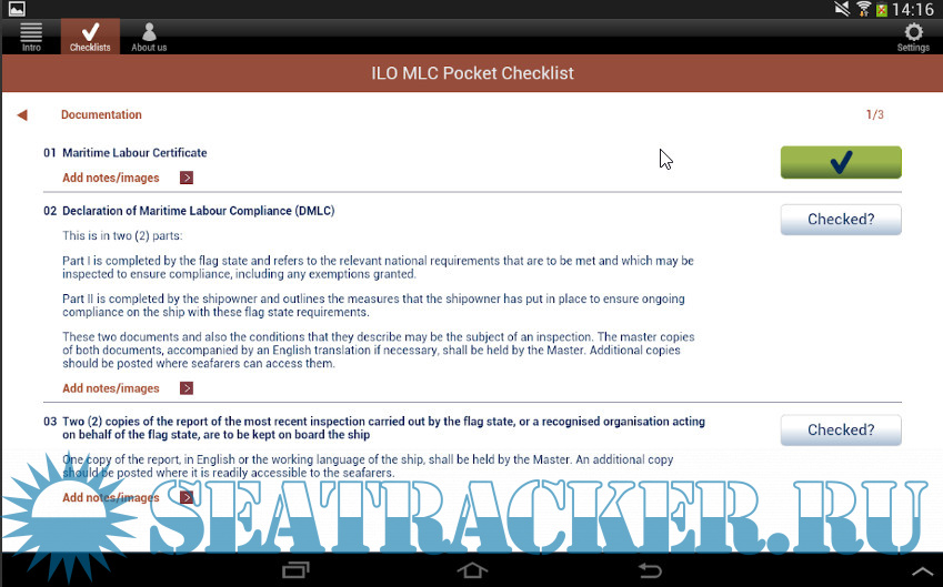 Description: To help reduce the risk of port state control detentions, this app serves as an interactive checklist that enables ship operators to view the requirements on the ILO MLC and check activities off as they are completed.