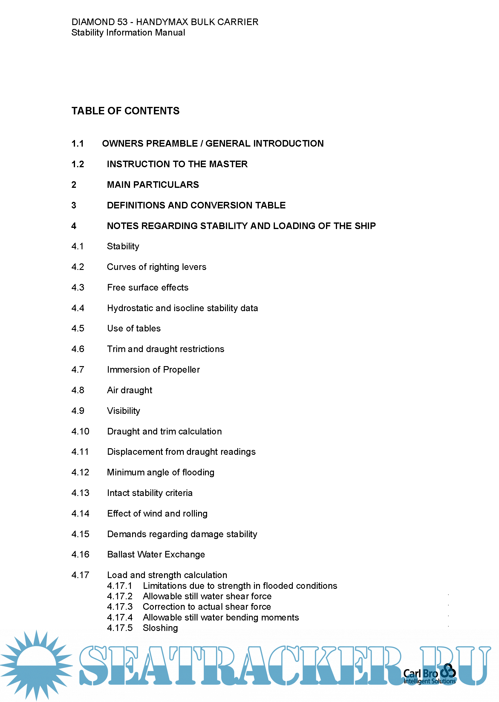 Diamond 53 - Handymax Bulk Carrier - Stability information manual - Carl Bro [2006, PDF]