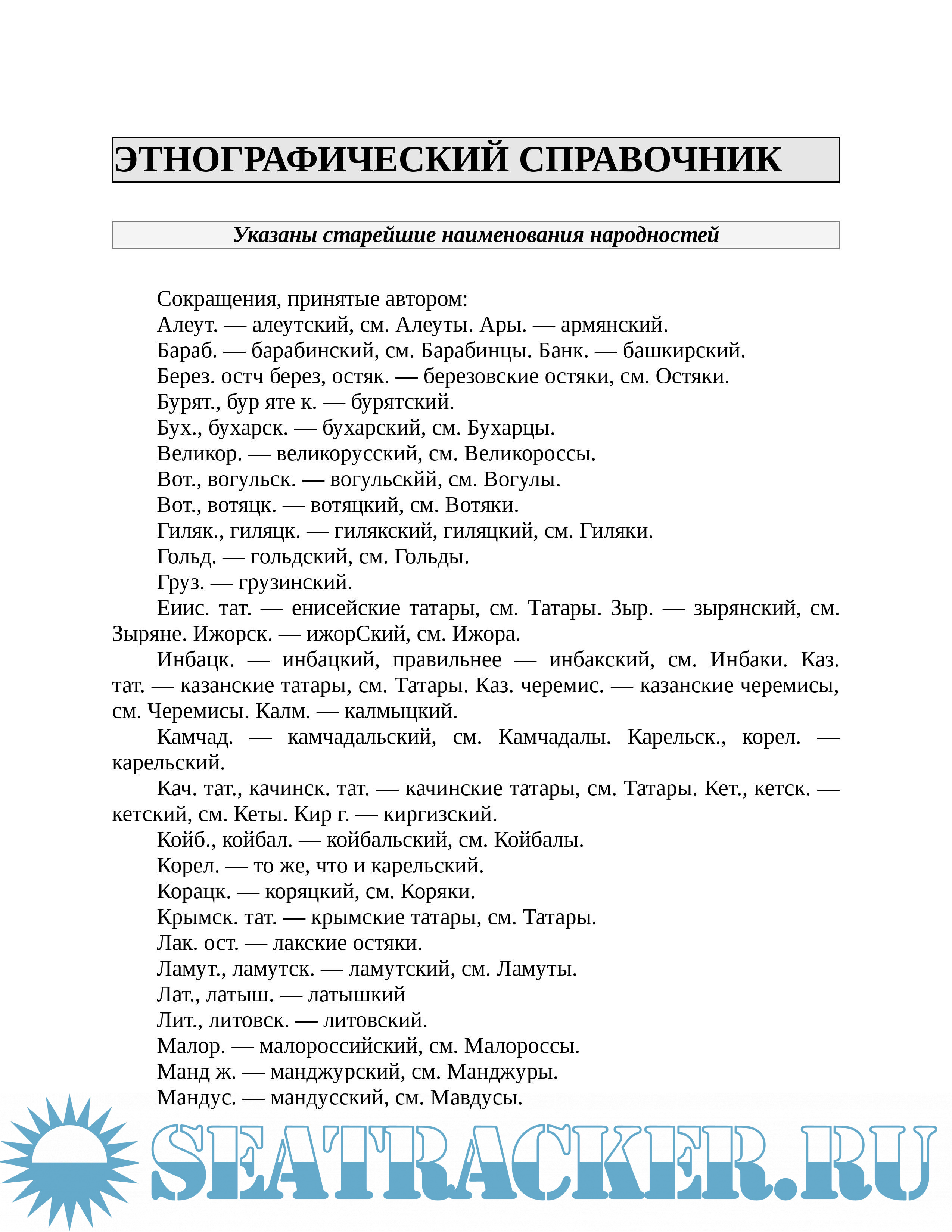 ЭТНОГРАФИЧЕСКИЙ СПРАВОЧНИК