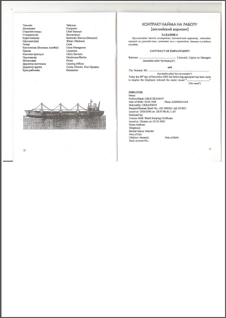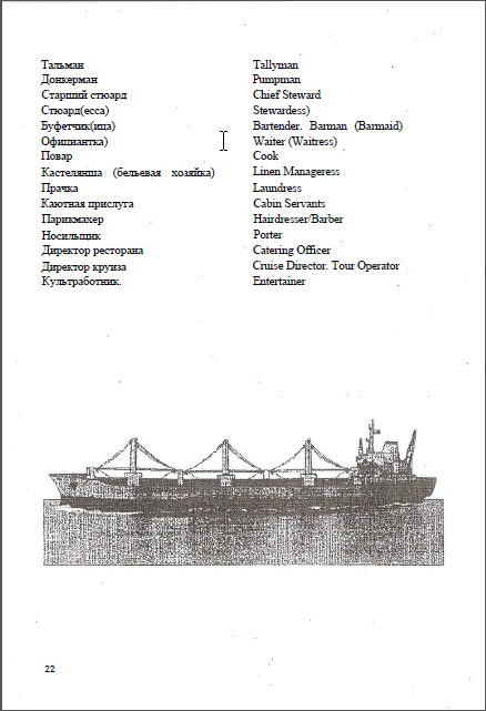 Интервью. Морские команды. Спасательные средства. Спуск спасательной шлюпки. Названия должностей на морском флоте. Контракт найма на работу (английский вариант). Контракт найма на работу (русский вариант).