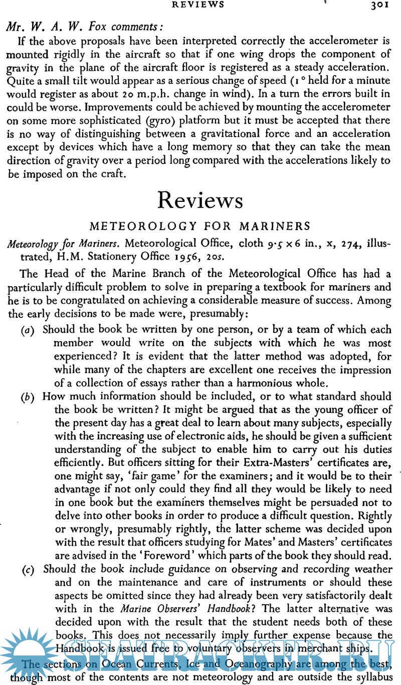 Year: 1978 Language: english Author: Meteorological office Genre: Technical book Publisher: london meteorology office Edition: 3rd ISBN: 9647124163 Format: PDF Quality: Scanned pages Pages count: 293 Description: This book covers all parts of marine meteorology and is very useful for mariners
