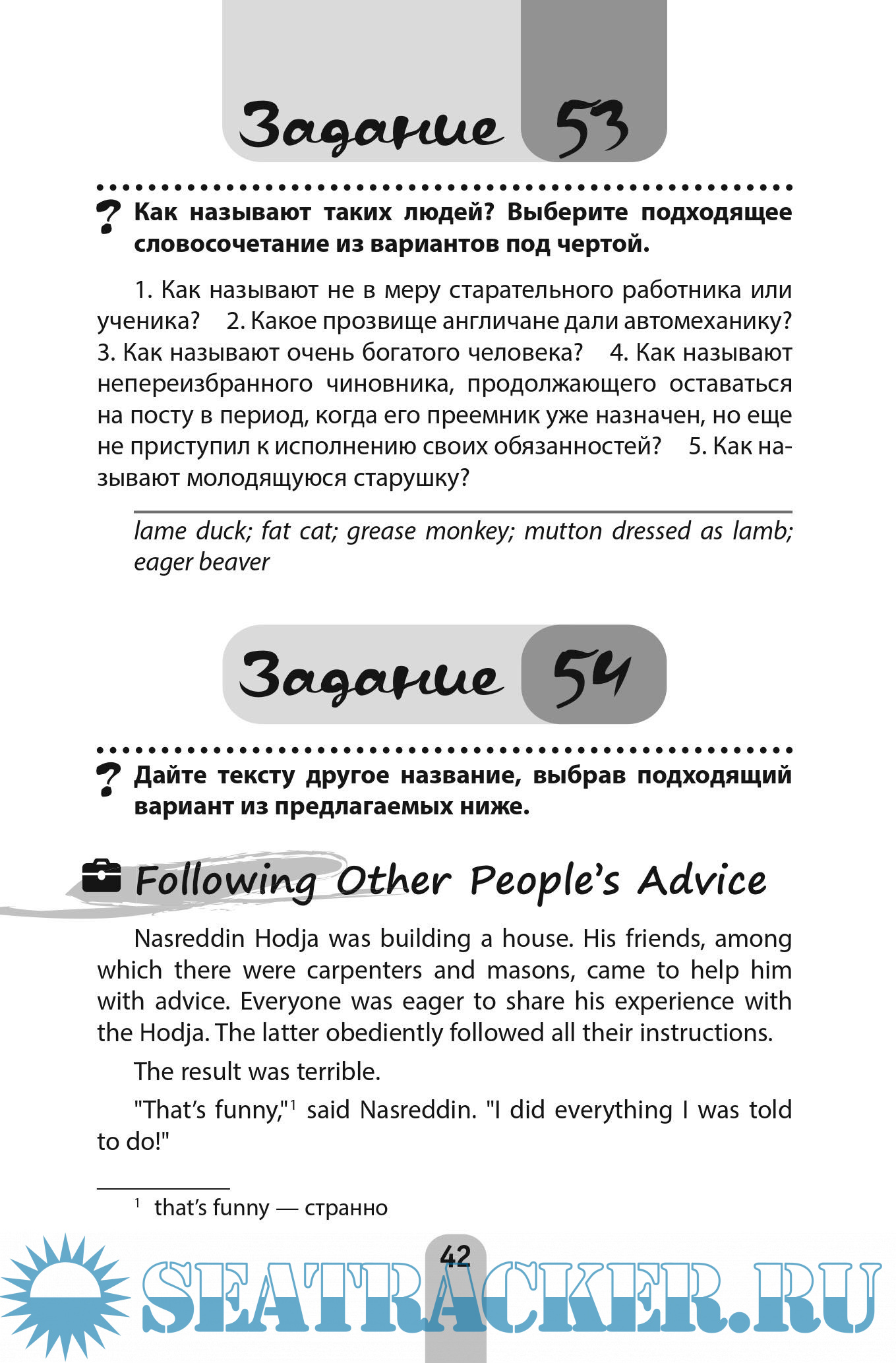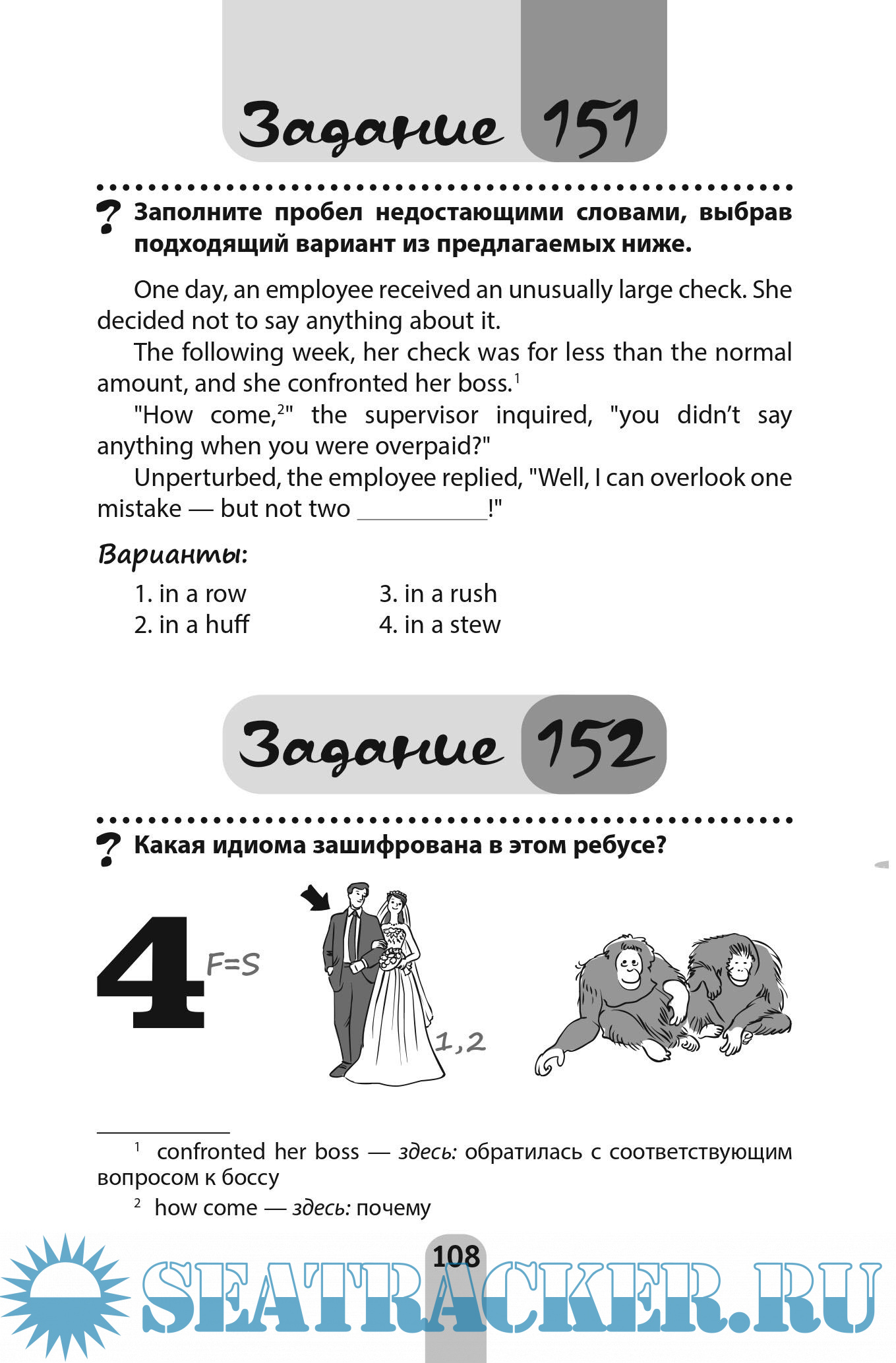 Описание: С этой книгой легко научиться уверенно и к месту употреблять английские идиомы. Для практики предлагается множество увлекательных заданий, с помощью которых читатели сами смогут догадаться о значениях незнакомых устойчивых выражений и вспомнить подзабытые. Освоенный таким образом материал надолго задерживается в памяти, что гарантирует эффективность обучения. В конце книги приводится англо-русский словарь, в котором содержится ключевая лексика, необходимая для поиска ответов. Проверить себя можно по ключам. В них также содержатся подробные пояснения, которые помогут освоить новый материал.