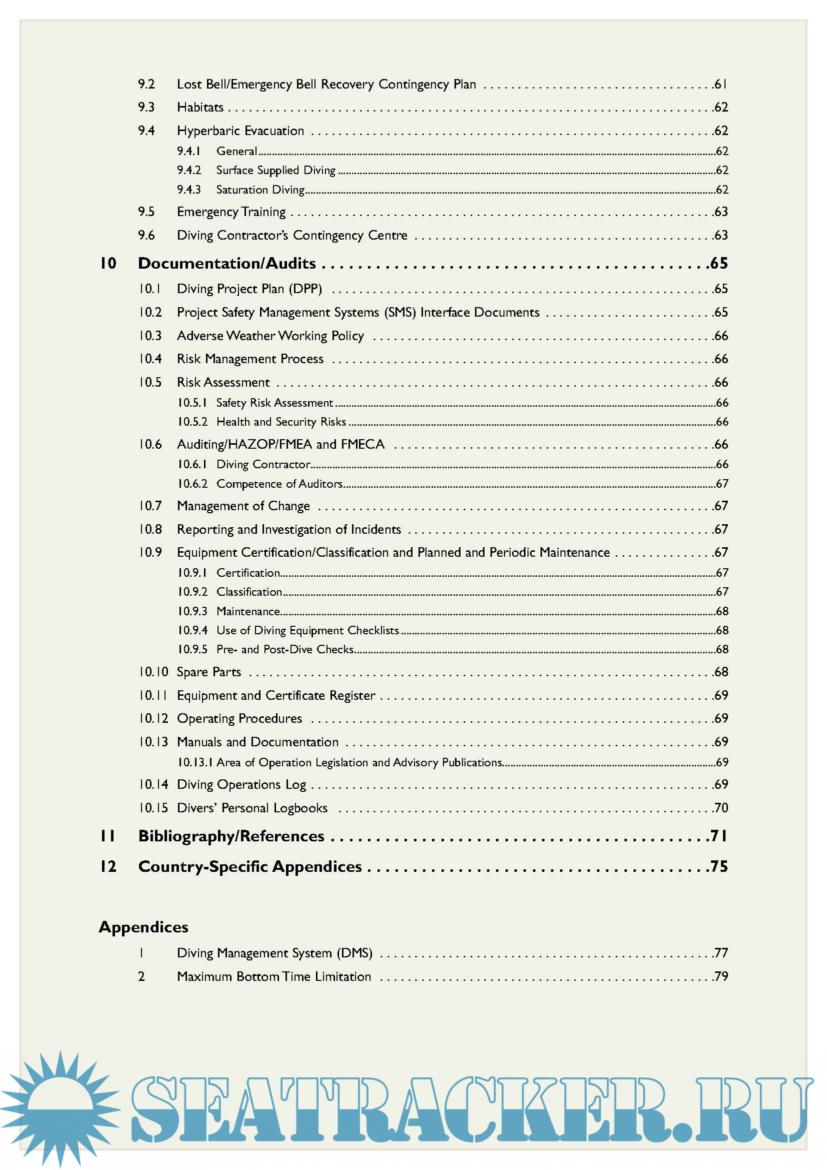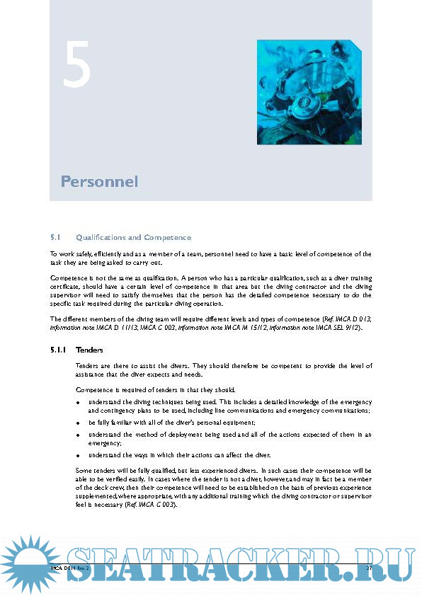 Year: 2014 Language: english Author: IMCA Genre: Documentation Publisher: IMCA Format: PDF Quality: eBook Pages count: 86 Description: The IMCA International Code of Practice for Offshore Diving offers examples of good practice, gives advice on ways in which diving operations can be carried out safely and efficiently and includes personnel, equipment and systems guidelines for the following diving operations: - surface supplied diving using: air, nitrox and mixed gas; - closed bell diving; - saturation diving.